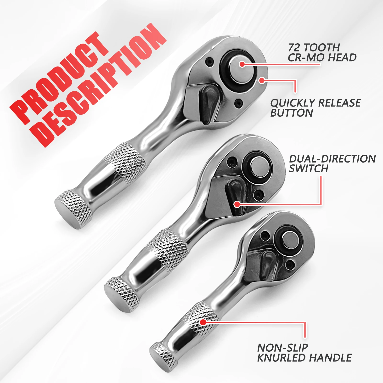 【Heavy-Duty CR-MO Steel for Durability】: Crafted from premium chrome molybdenum (CR-MO) steel, these ratchet wrenches offer exceptional strength, impact resistance, and long-lasting durability. The polished chrome finish resists rust and ensures easy cleaning.