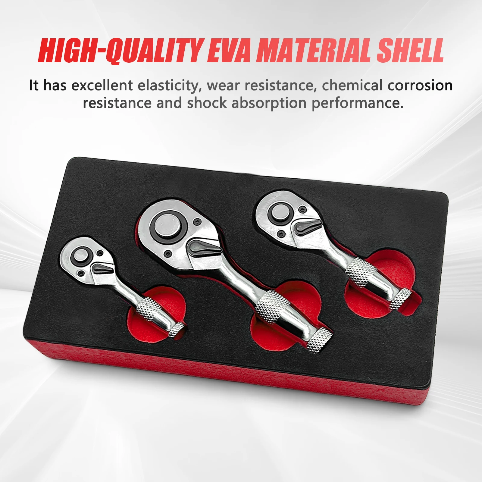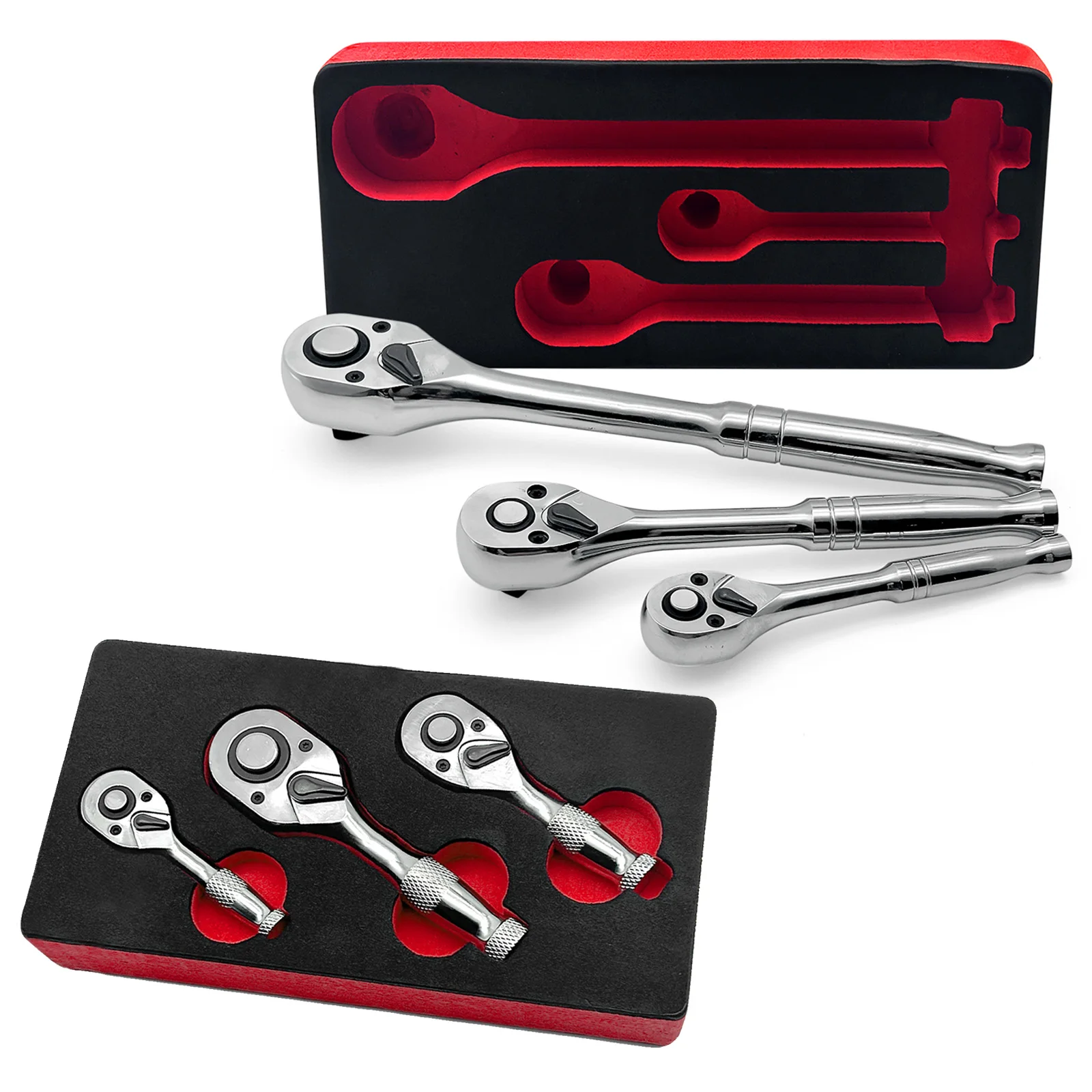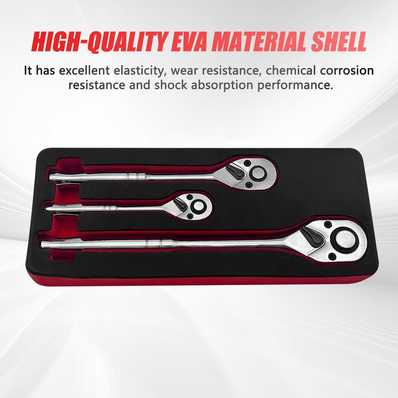 3Pcs 72 Teeth Quick Socket Stubby Ratchet Wrench 1/4" 3/8" 1/2" Drive Long/Short Handle Spanner Repair Tool with EVA Foam Case