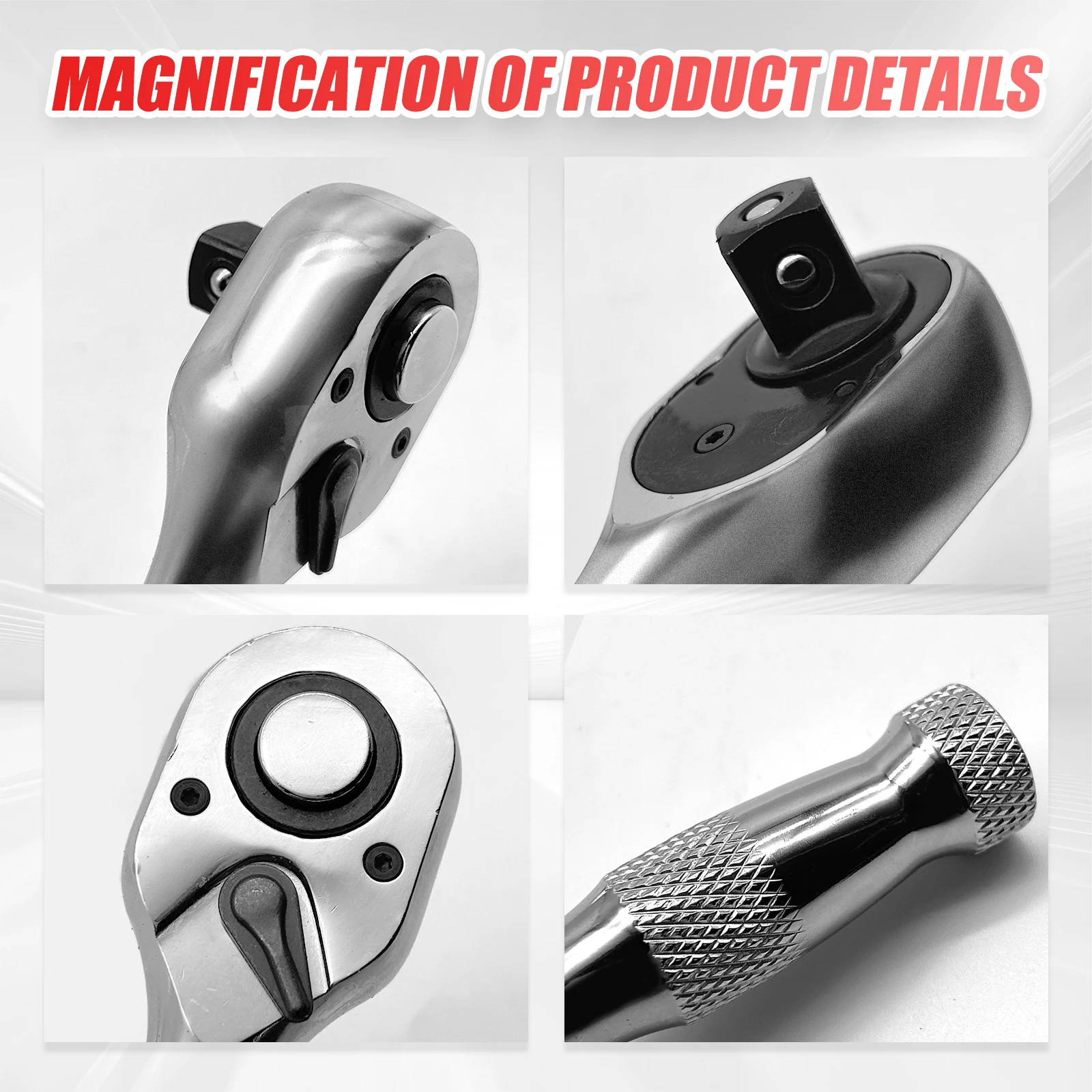 【Quick-Release & Reversible Mechanism】: Quick-release button keeps sockets secure and prevents drops. Reversible switch allows for one-hand direction changes, improving workflow.