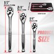 【Versatile Ratchet Set for Every Task】: 1/4" drive ratchet – Ideal for small screws, electronics, and household repairs. 3/8" drive ratchet – Perfect for automotive, motorcycle, and bike repairs. 1/2" drive wrench set – Built for heavy-duty automotive and industrial work.