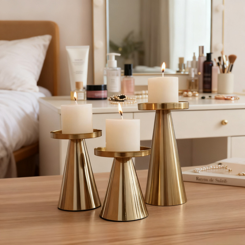 3pcs Candlestick Copper-Plated Tea Candle Light Candlestick Set for Wedding Home Decoration Table Black Candle Holder