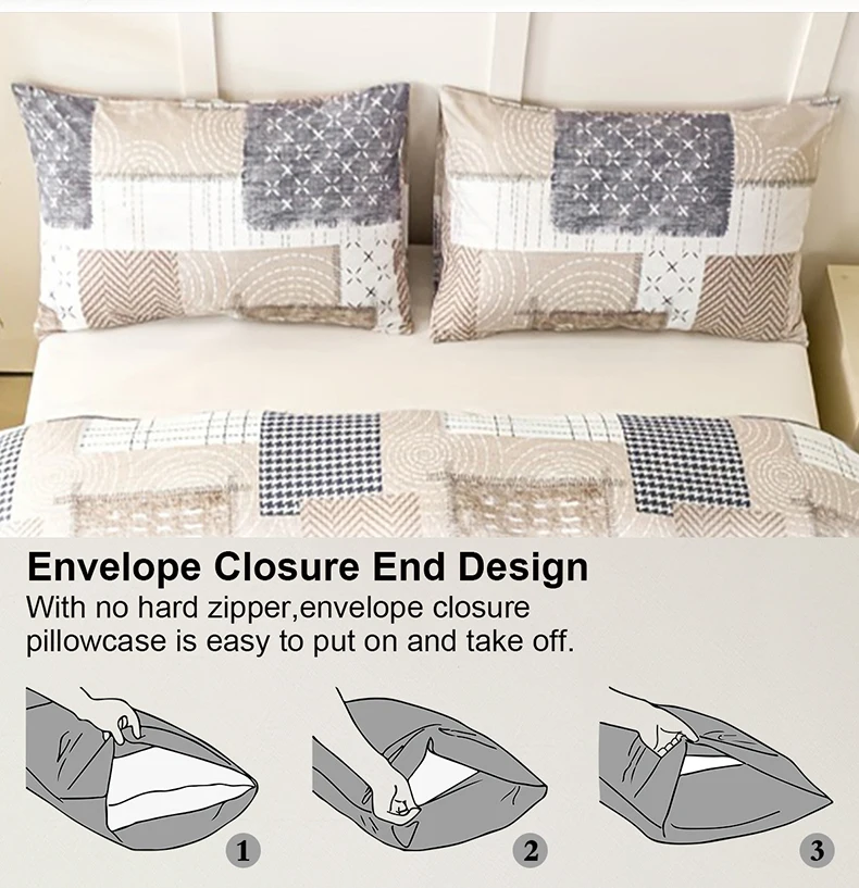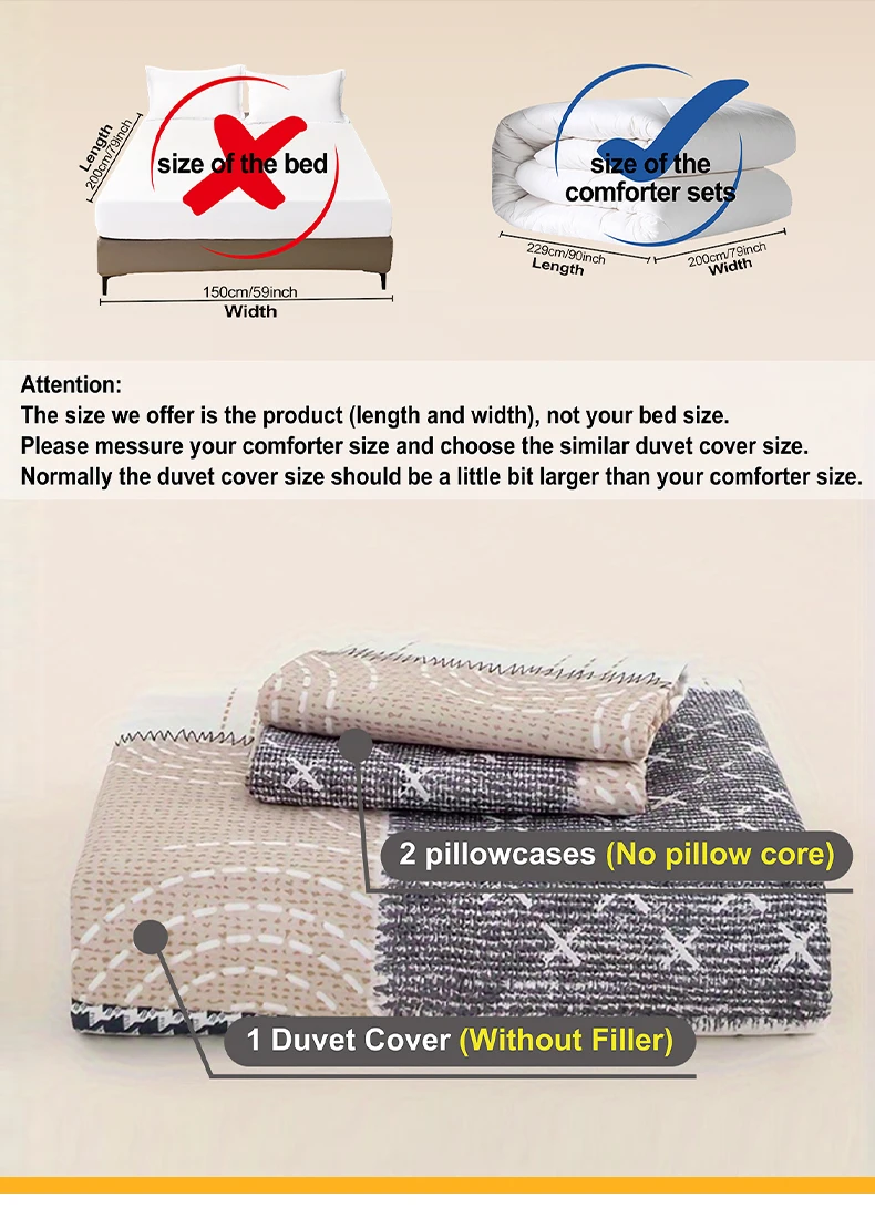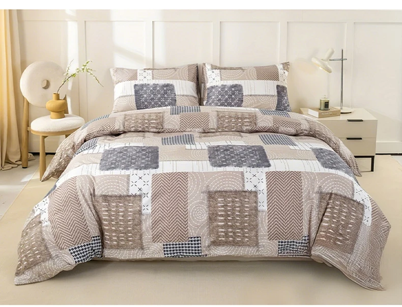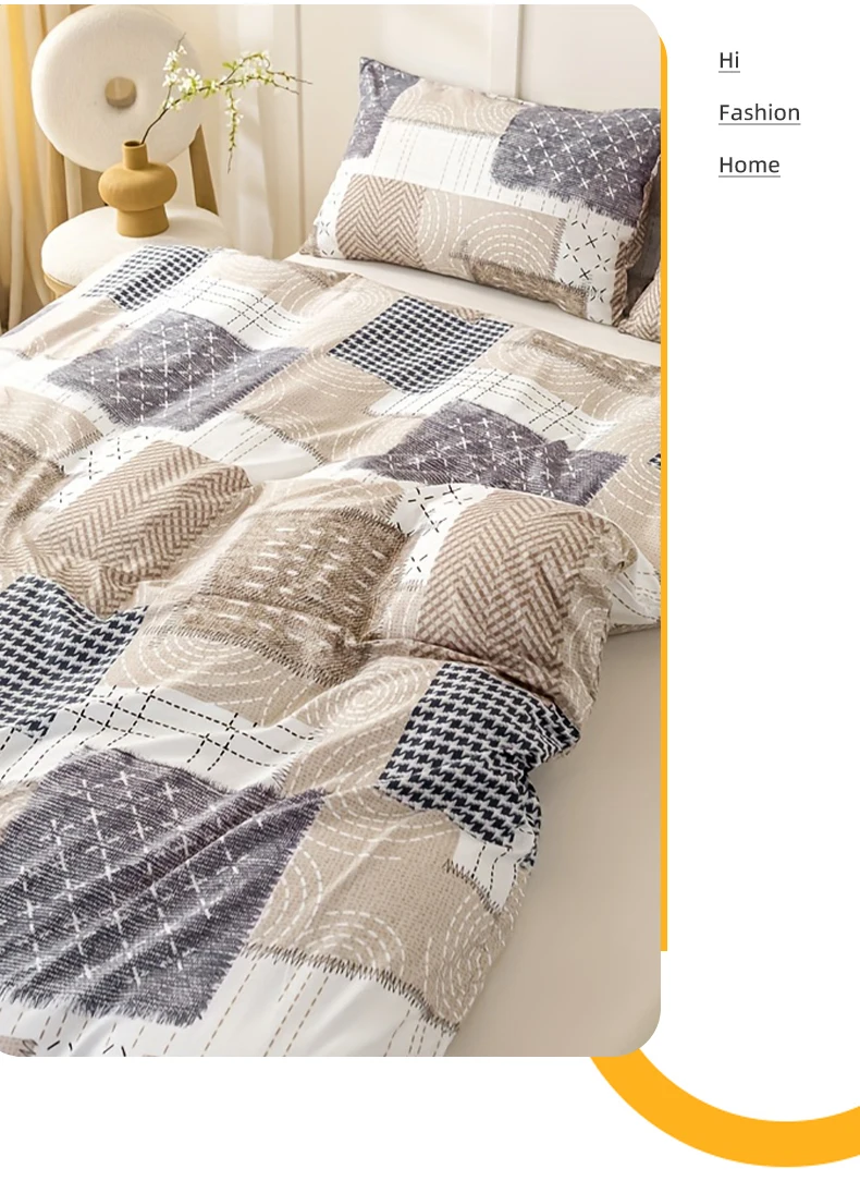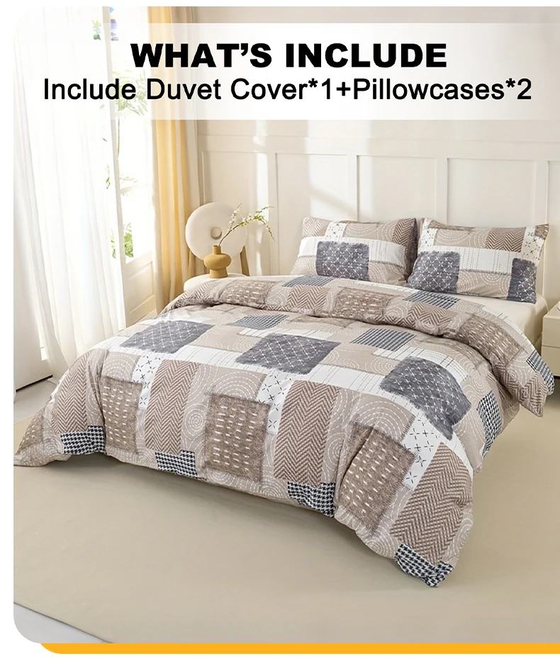 3pcs Chic Patchwork Design Pattern Print Duvet Cover Set, Soft Skin-Friendly Bedding Set Includes 1 Duvet Cover And 2 Pillowcase