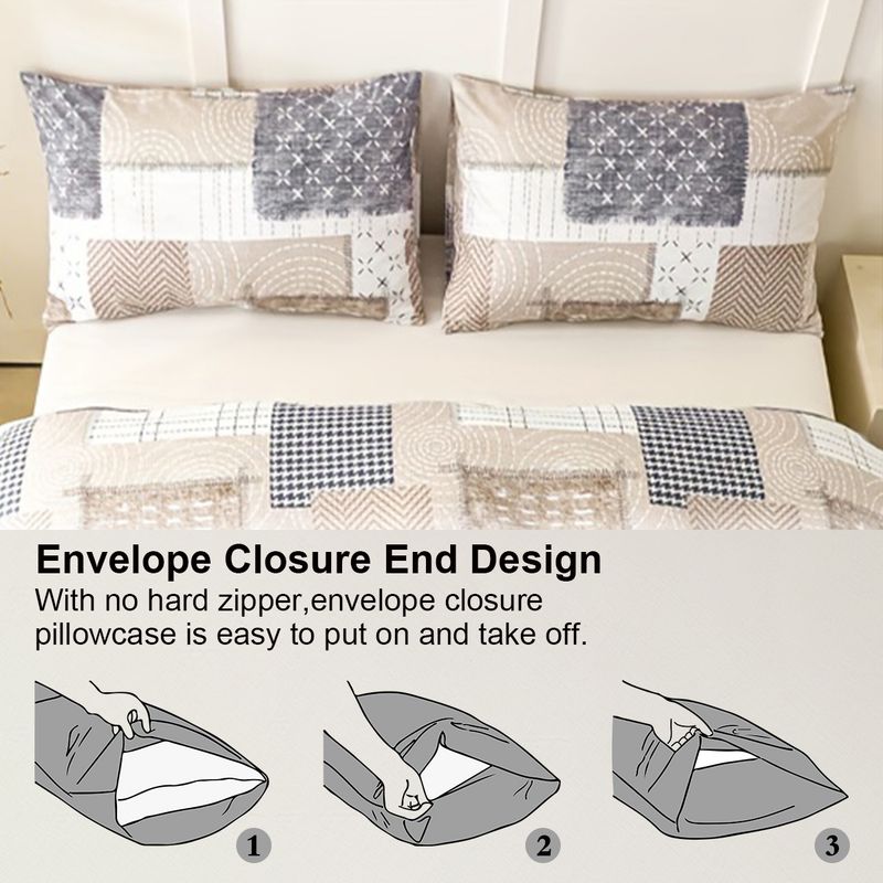 3pcs Chic Patchwork Design Pattern Print Duvet Cover Set, Soft Skin-Friendly Bedding Set Includes 1 Duvet Cover And 2 Pillowcase