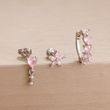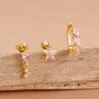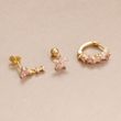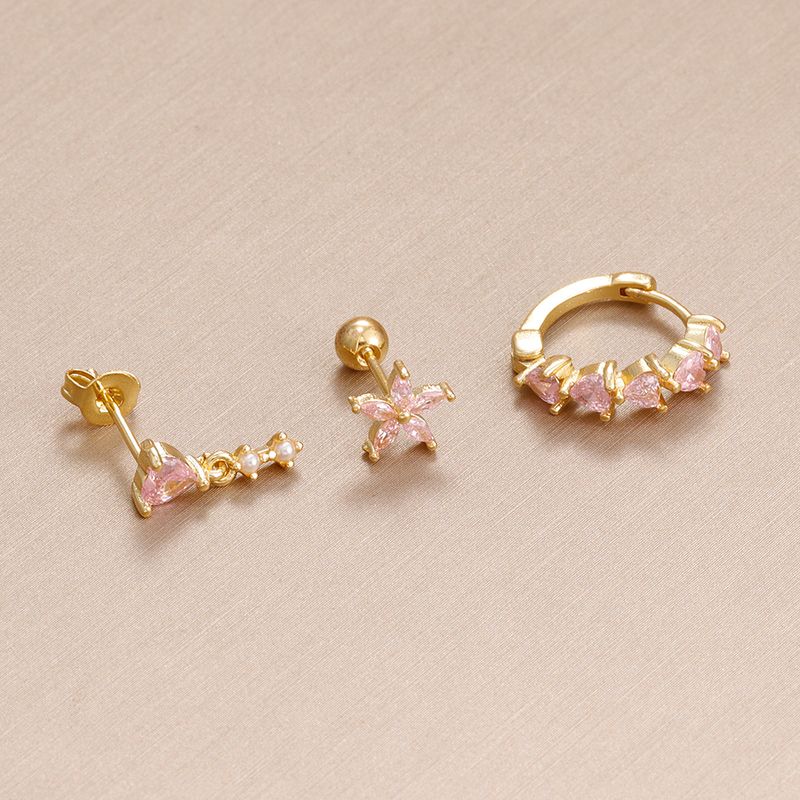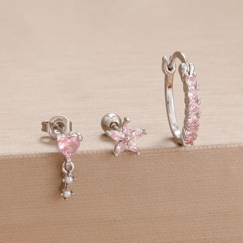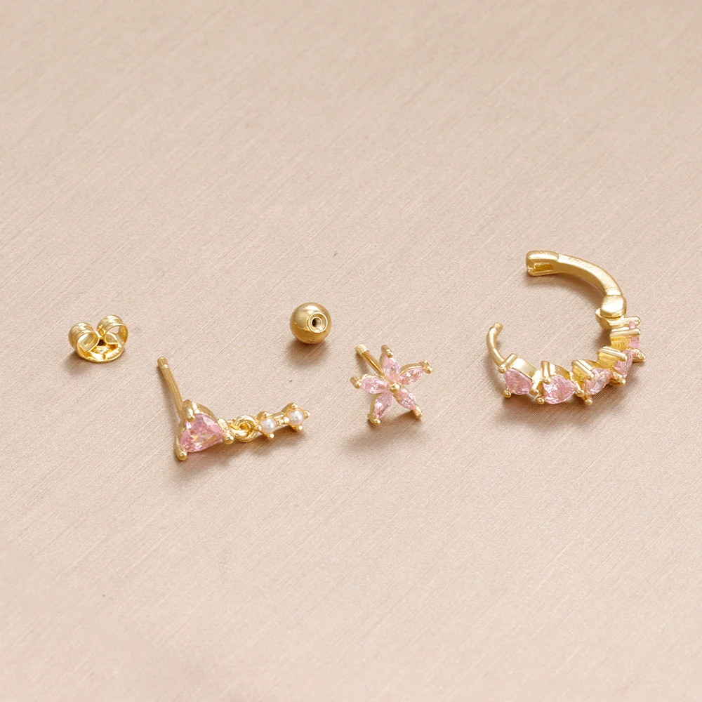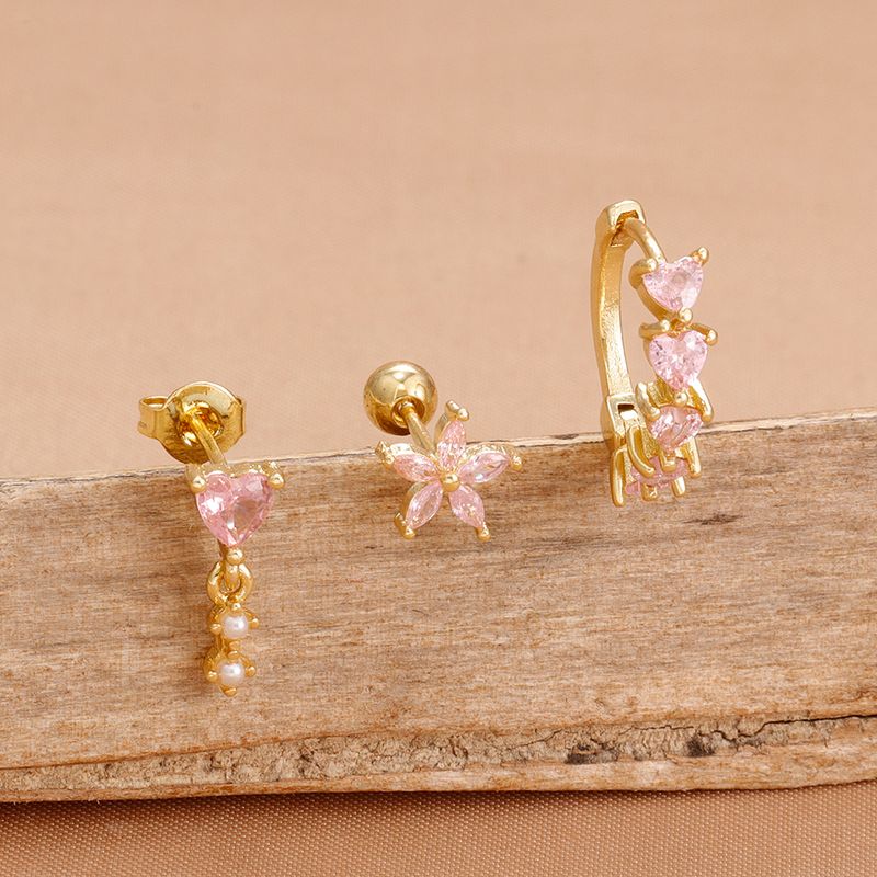 3PCS Cute Pink Crystal Flower Heart Hoop Earring Set Fashion 14K Gold Plated Geometric Ear Stud Pendant Earring Piercing Jewelry