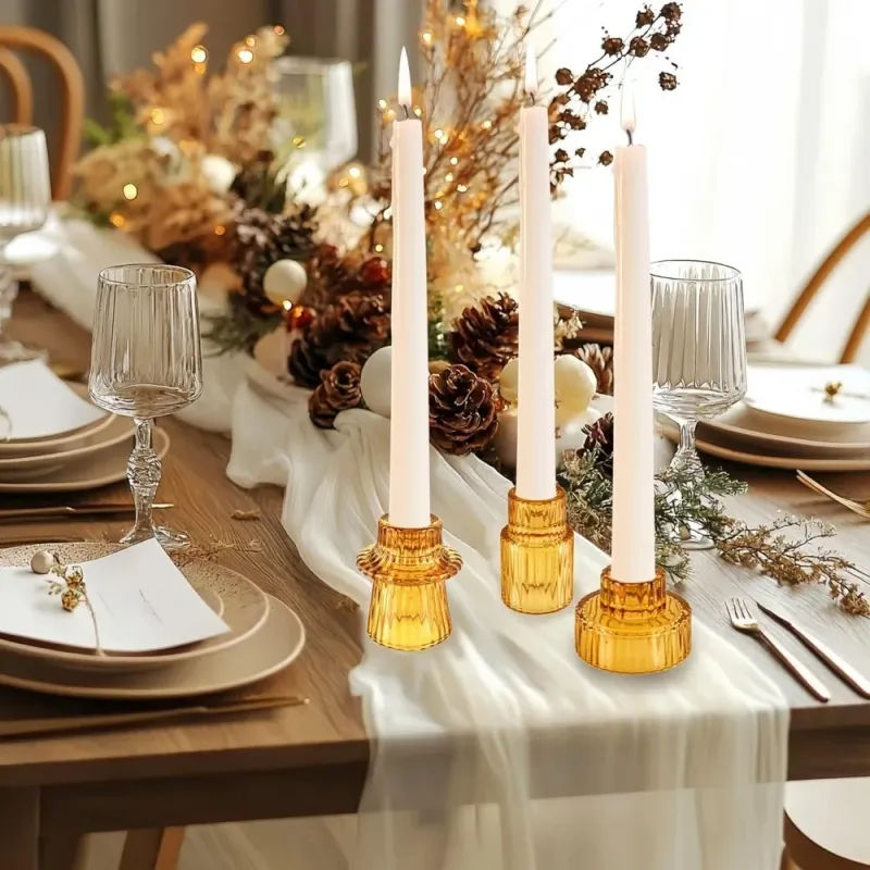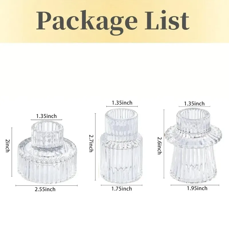 3Pcs Double Sided Taper Votive Glass Candle Holder Wedding CandlestickChristmas Tealight Tea Party ForTable Centerpiece Decor