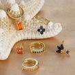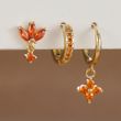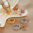 3PCS Fashion Orange Blue Zircon Hanging Earrings Set for Women Stainless Steel Flower Dangle Earring Piercing Jewelry