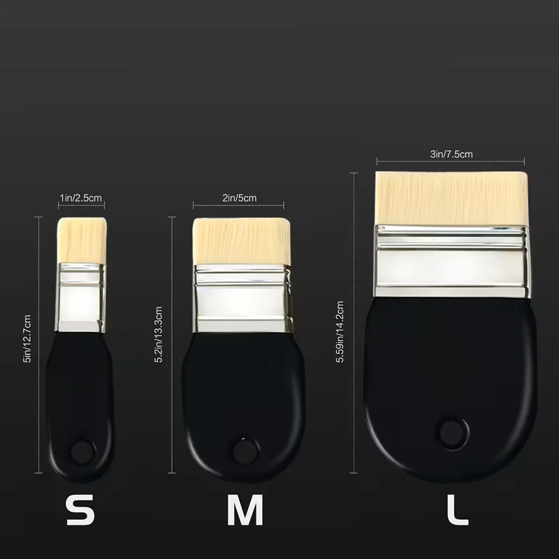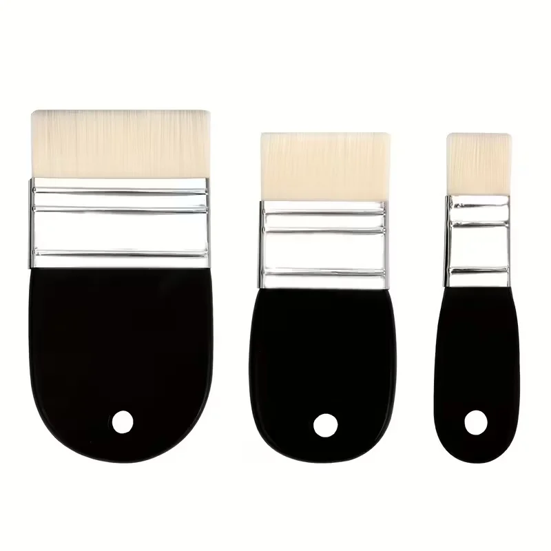 3pcs flat brush set, suitable for acrylic, oil painting, paint, varnish, watercolor, painter, student, artist nylon brushes