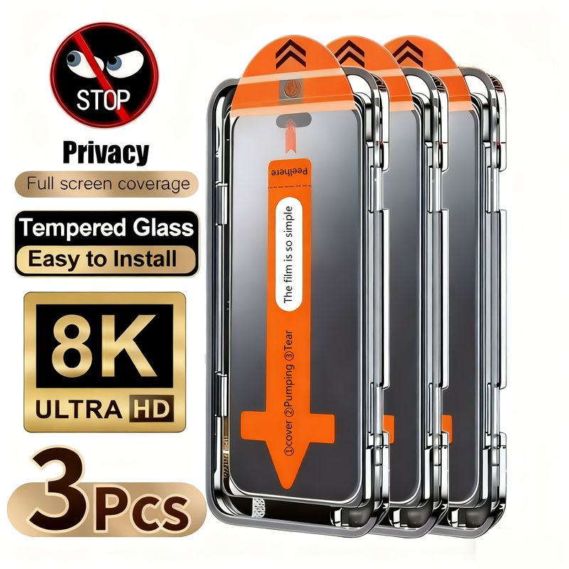 3Pcs Full Coverage Privacy Tempered Glass Screen Protectors for iphone 17 16 15 14 13 12 111 Pro Max 16e Air XR XS Max Glass