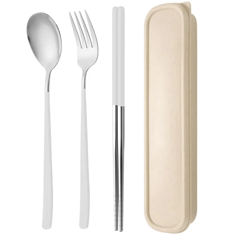 3pcs Gold Korean Dinnerware Set Chopsticks Fork Spoon Cutlery Set with Storage Box Stainless Steel Flatware Portable Tableware