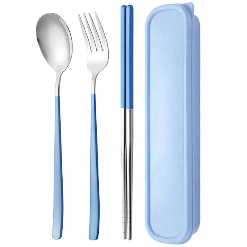 3pcs Gold Korean Dinnerware Set Chopsticks Fork Spoon Cutlery Set with Storage Box Stainless Steel Flatware Portable Tableware