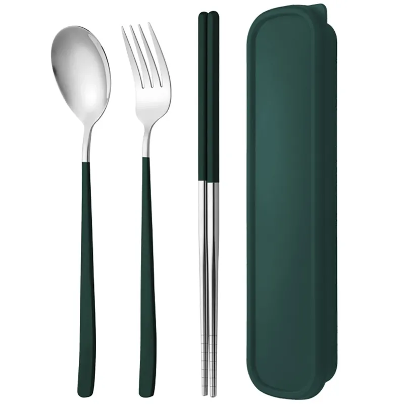 3pcs Gold Korean Dinnerware Set Chopsticks Fork Spoon Cutlery Set with Storage Box Stainless Steel Flatware Portable Tableware