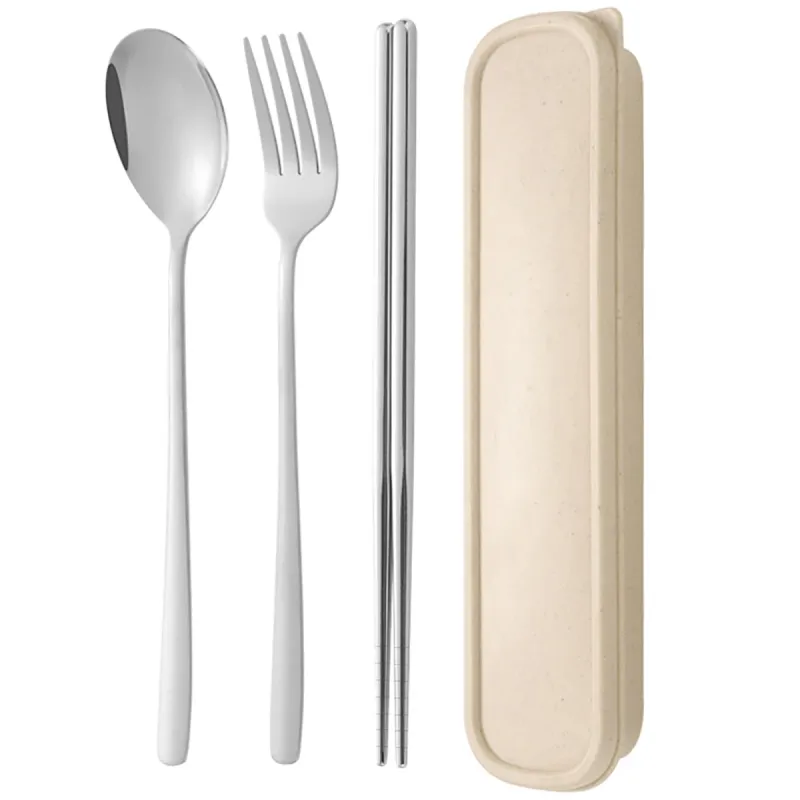 3pcs Gold Korean Dinnerware Set Chopsticks Fork Spoon Cutlery Set with Storage Box Stainless Steel Flatware Portable Tableware