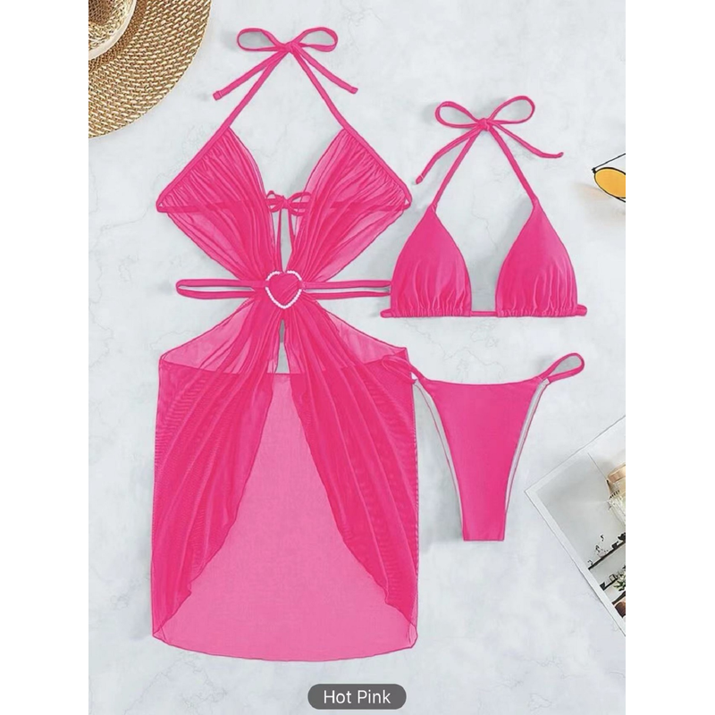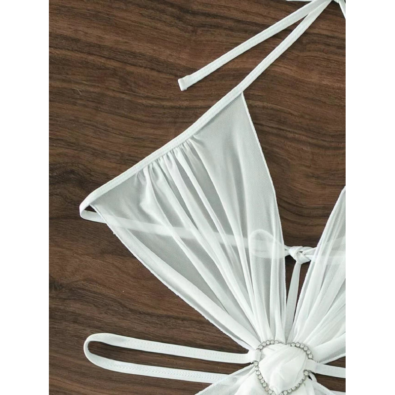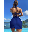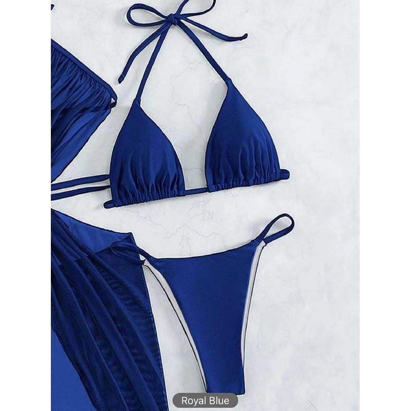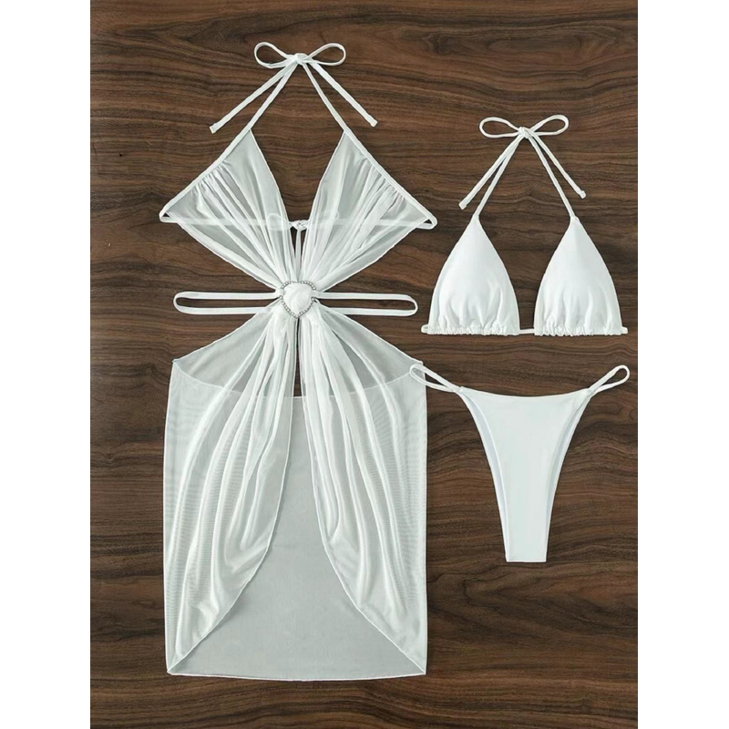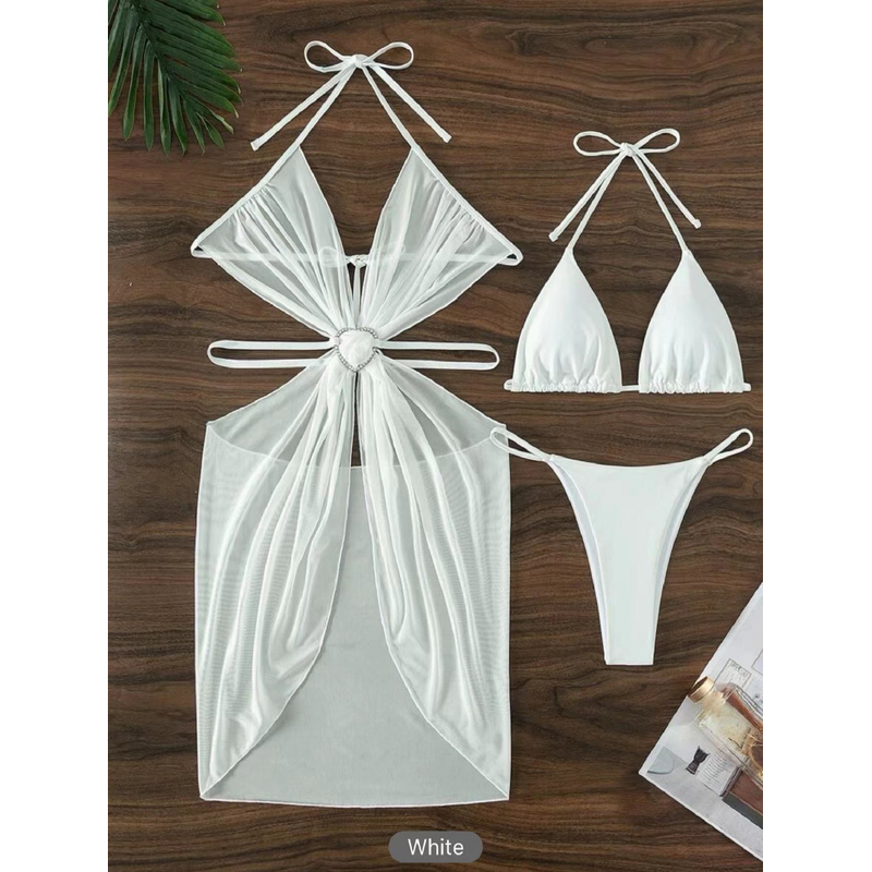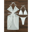 3pcs Halter Neck Bikini Beach Summer Solid Color Split Swimsuit Womens Clothing White S