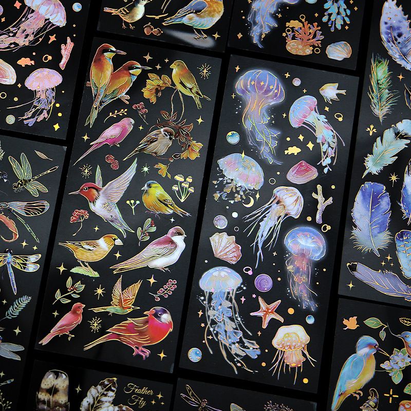 3pcs Kawaii Feather Dragonfly Bird Jellyfish Decorative Stickers Pack Scrapbooking Material Label Diary Phone Journal Planner