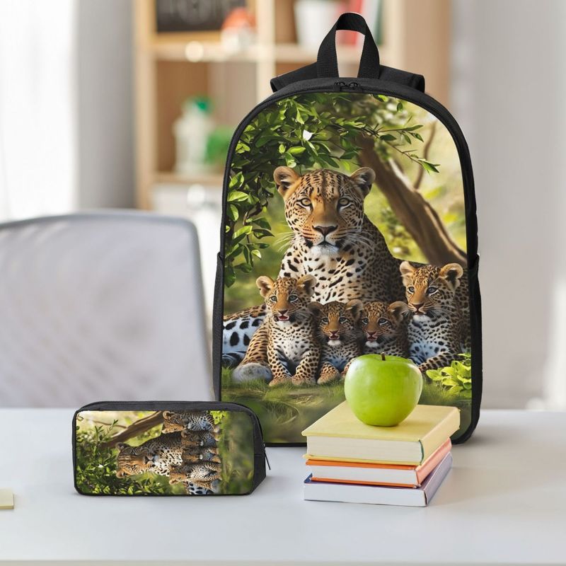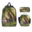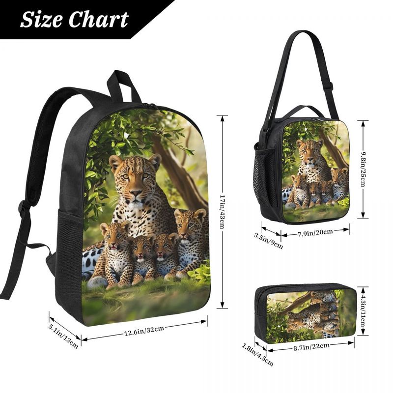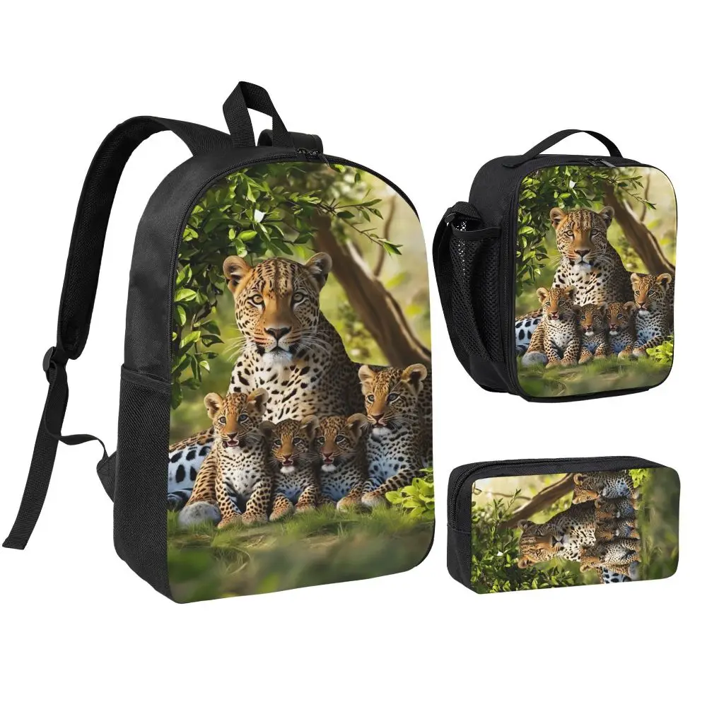 3Pcs Leopard Family Accessories Backpack Set for Kids Pen Bags Bookbag Sets with Lunch Box For Primary School Students Knapsack