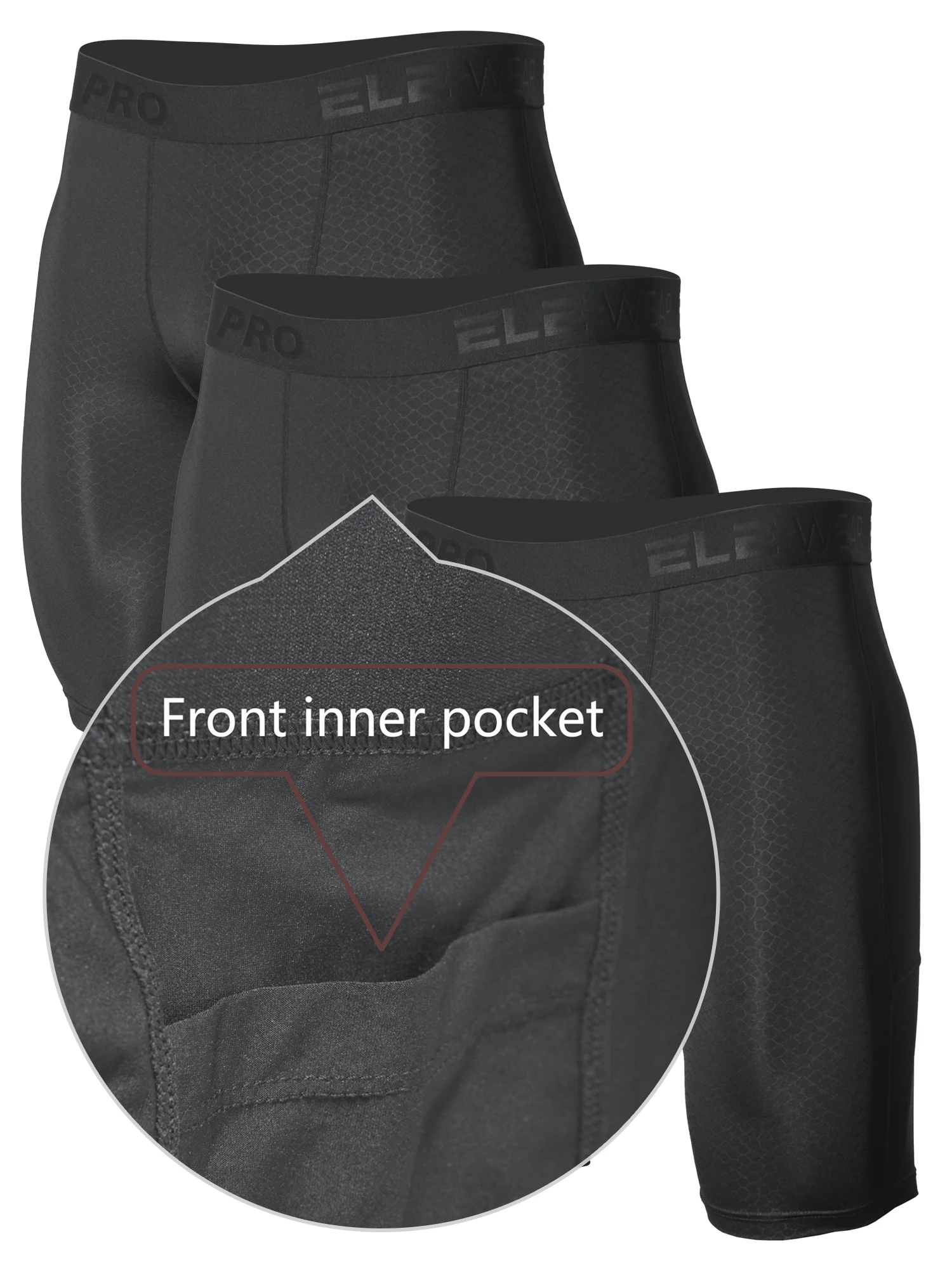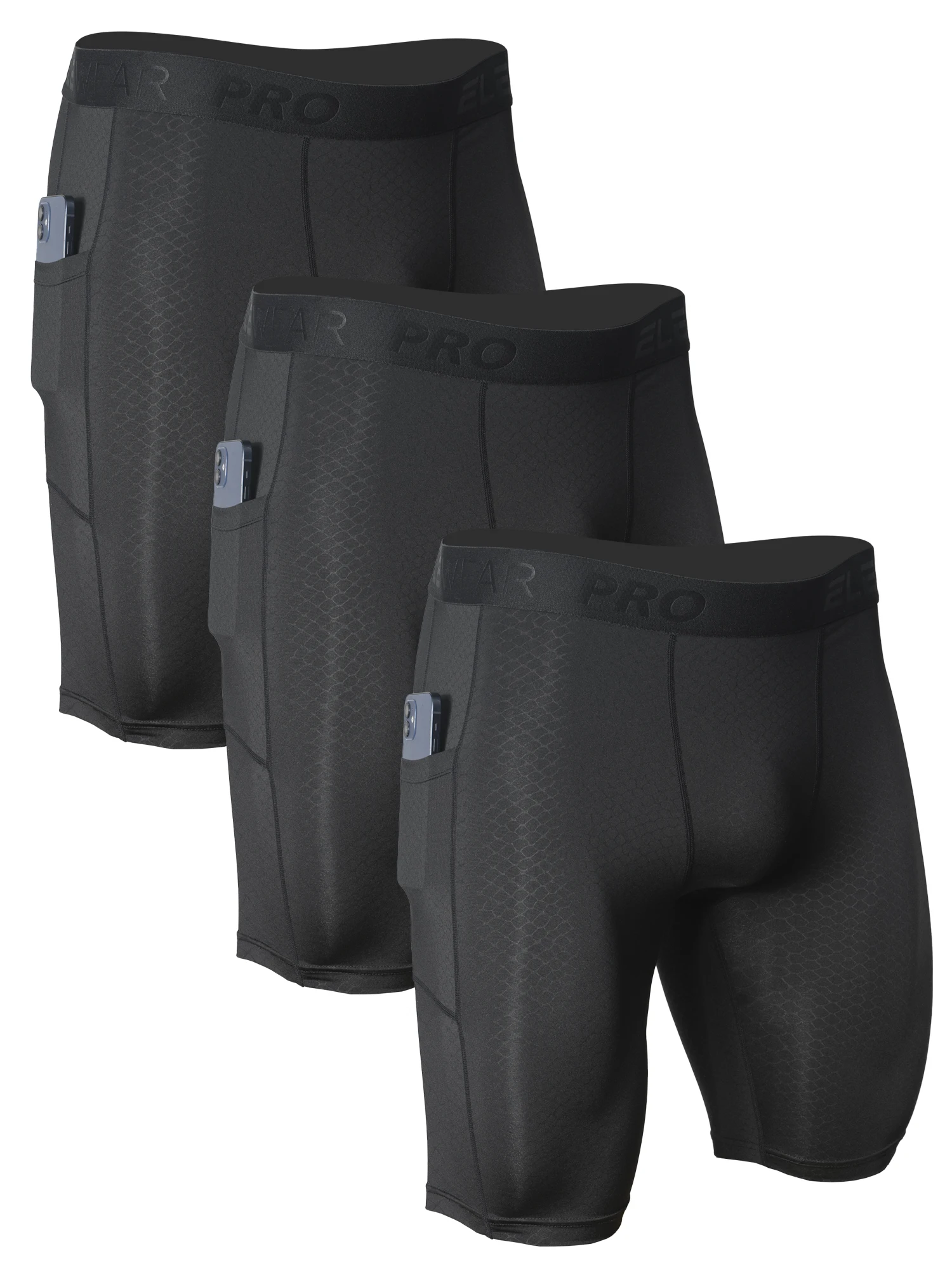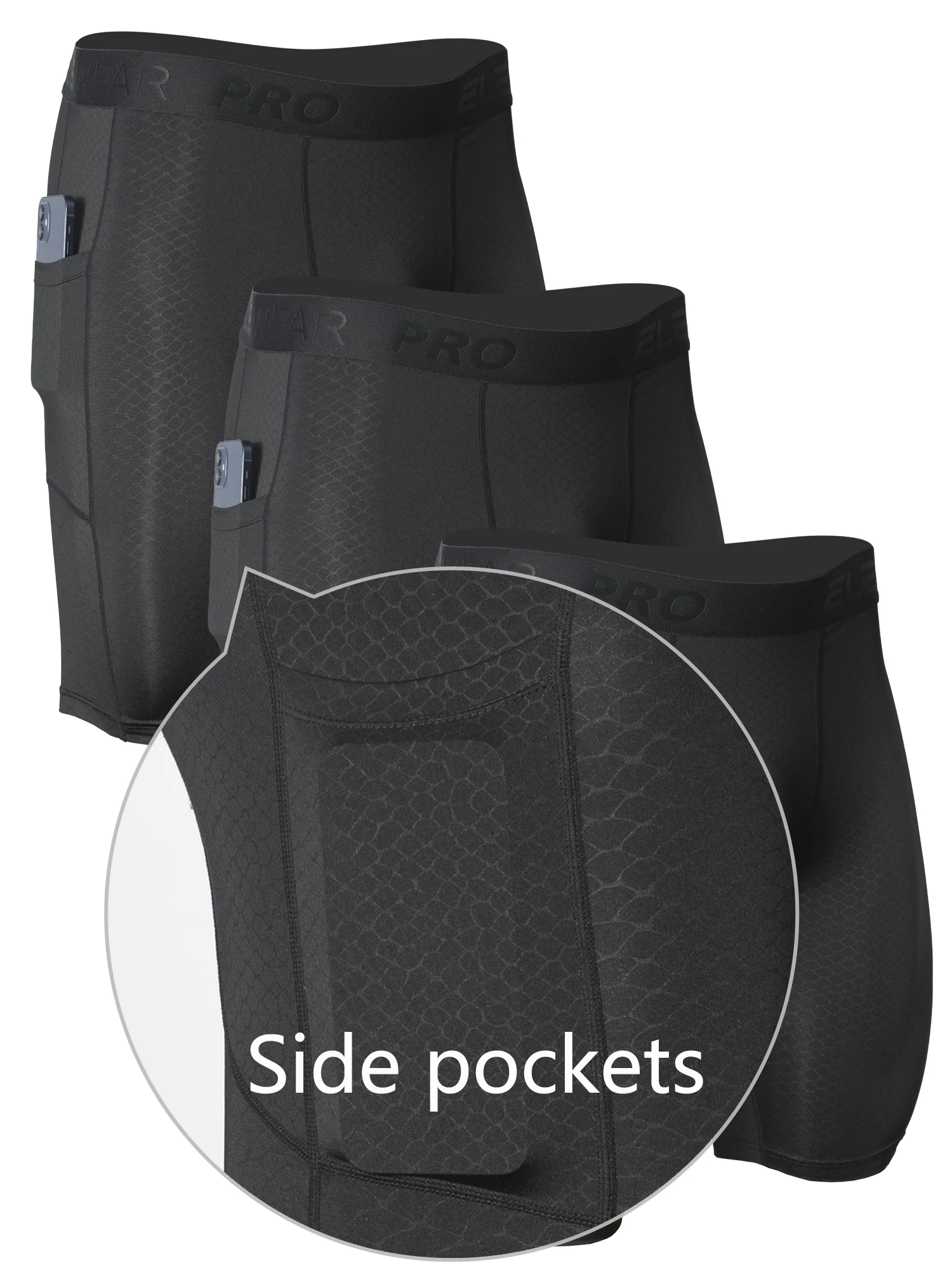 3pcs Men's Underwear Sports Running Fitness Side Pockets,Front Inner Pocket,Snake Pattern Embossed,Moisture Wicking Quick Drying