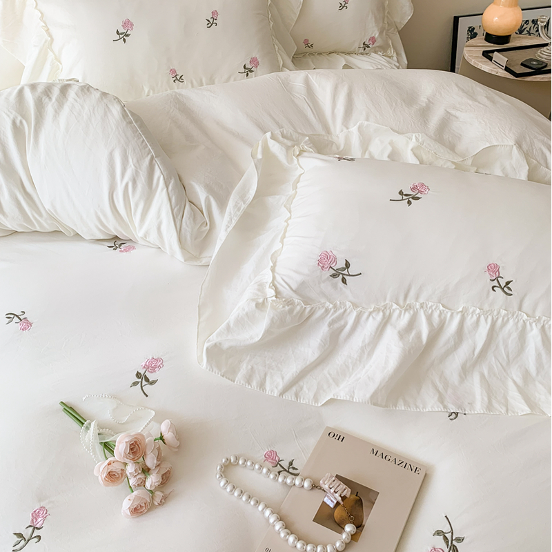 3pcs Rose Embroidered Duvet Cover Set (1*Duvet Cover + 2*Pillowcase, Without Core), Princess Style Lace Bedding Set