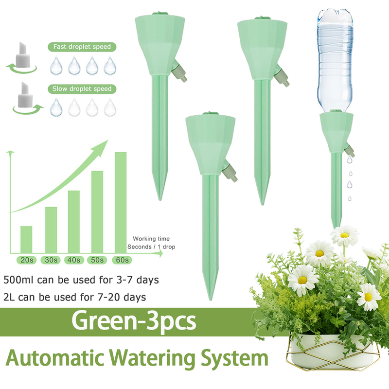 Self Watering Spikes, 3Pcs Plant Watering Devices, Automatic Watering System for Potted Plants with Slow Release Valve, Adjustable Water Volume Drip Irrigation Control System for Home Vacation