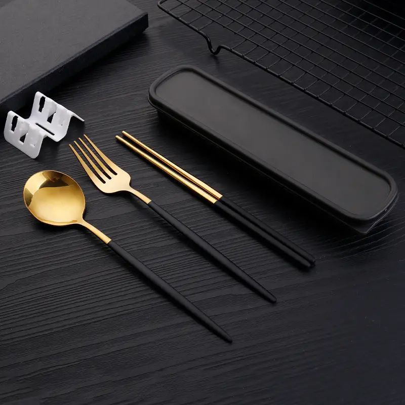 3pcs Thin Portuguese portable stainless steel cutlery chopsticks, forks, spoons, student home outdoor picnic tableware