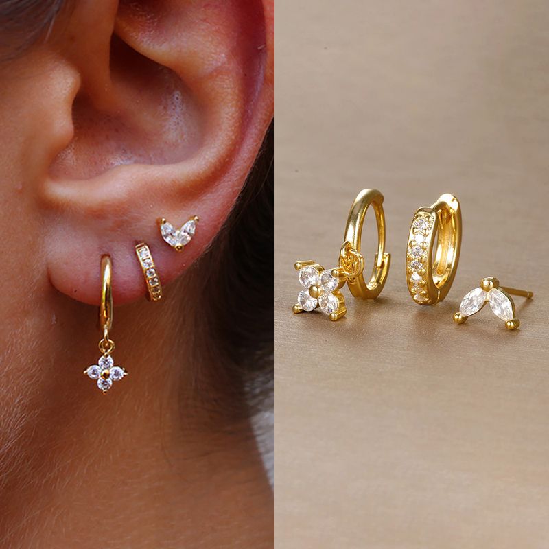 3PCS Trendy Stainless Steel Flower Drop Earring Set For Women Crystal Zirconia Dangle Earring Hypoallerg Piercing Jewelry aretes