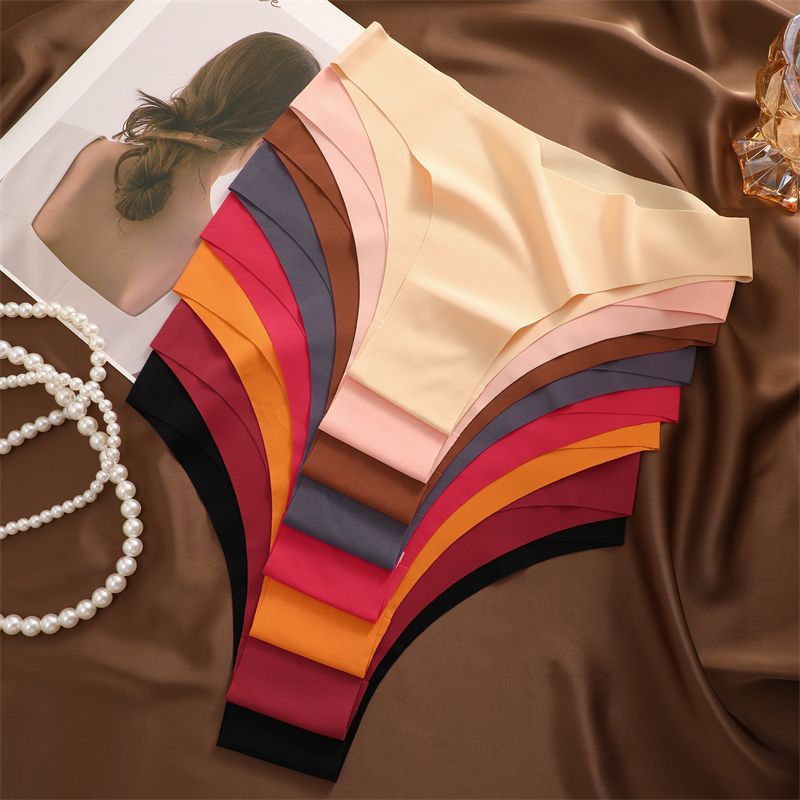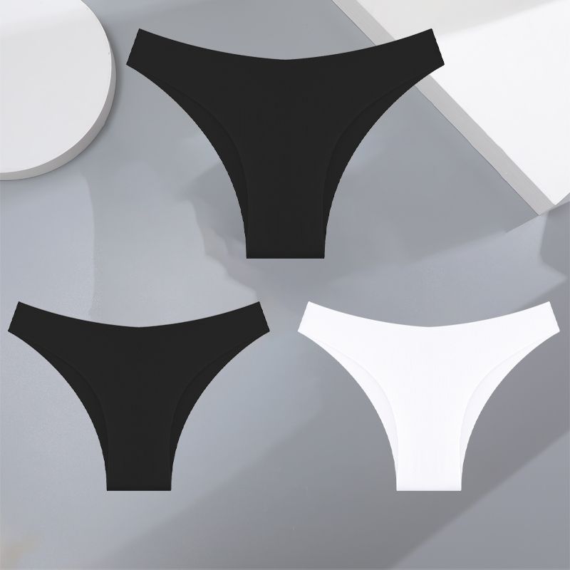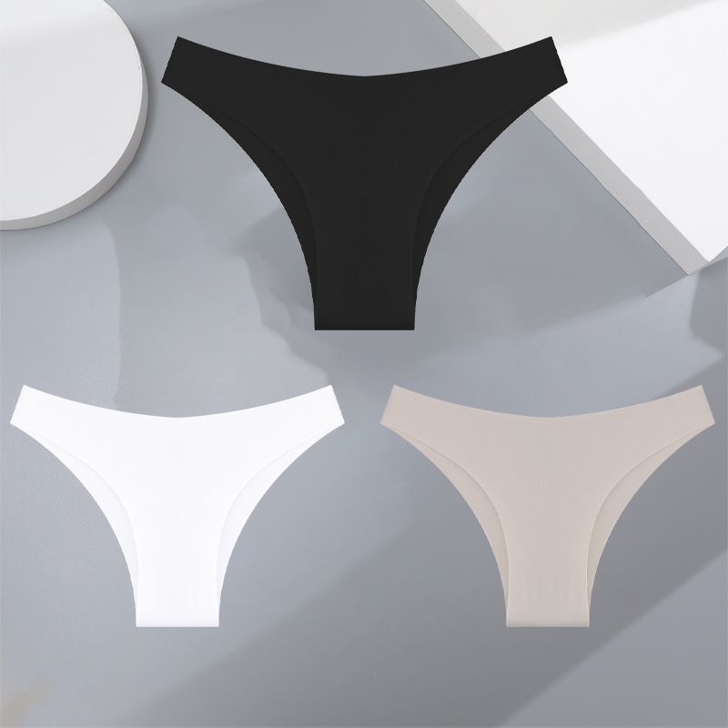3Pcs Ultra-thin Seamless Silk Underwear Women's Panties Sexy Low-Waist Stretch Bikini Solid Color Briefs Lingerie XS-XXL Fashion