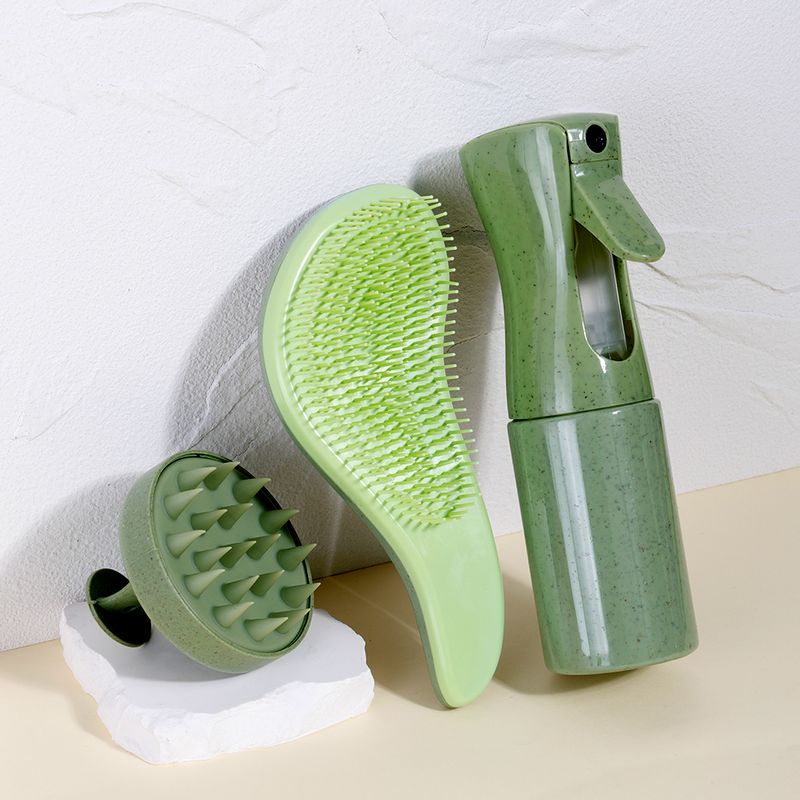 3pcs Wheat Straw Hair Care Set - 200ml Spray Bottle Soft Bristle Comb & Portable Silicone Scalp Massager Comb Hair Styling Tool