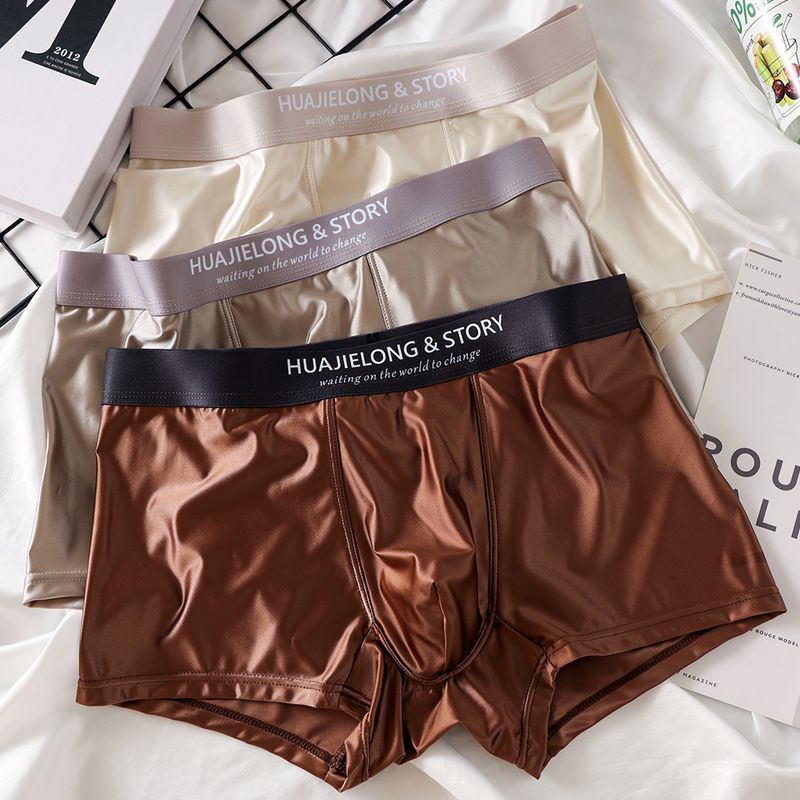 3PCS/Pack Luxury Ice Silk Satin-like Boxers Summer Smooth Cool Solid Men's Underpants Breathable Mesh Crotch Panties Underwear