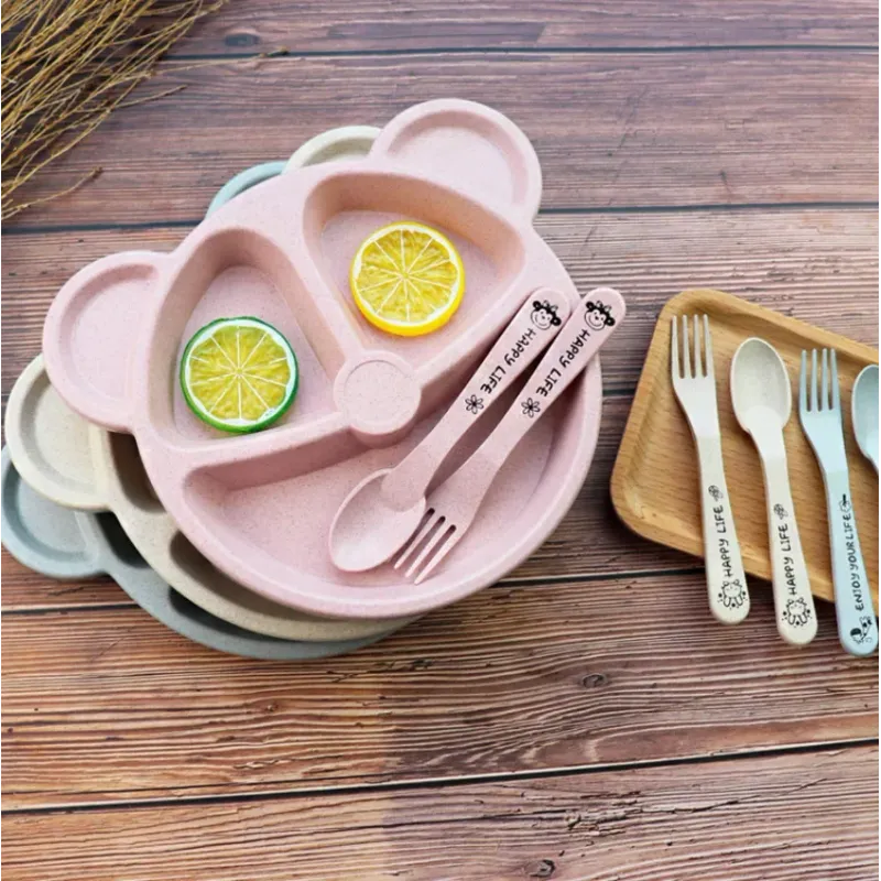 3Pcs/Set Baby Food Feeding Tableware Cartoon Bear Bowl+Spoon+Fork Eating Dinnerware for Children Dishes Kids Dinning Plate