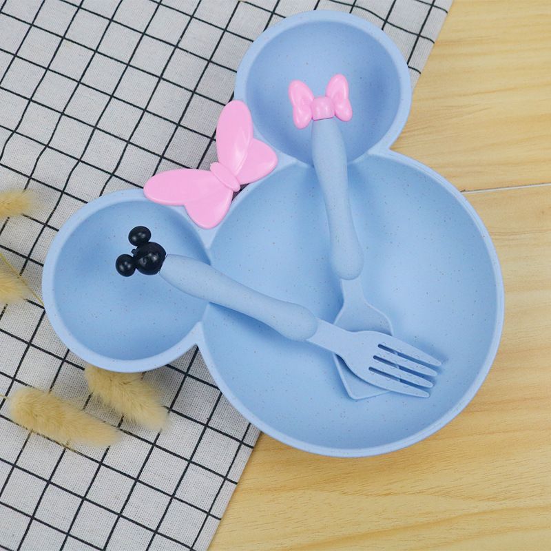 3Pcs/set Cartoon Baby Bowl Tableware Set Wheat Straw Children's Dishes Kids Dinner Feeding Plate Bowknot Food Plate Spoon Fork