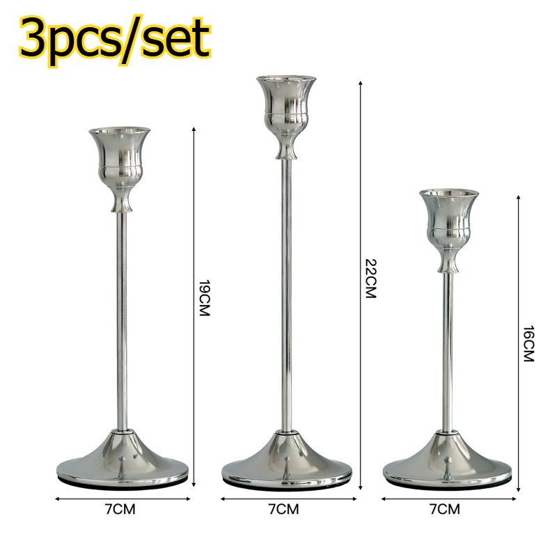 3pcs/set Creative Iron Electroplated Candle Holder Metal Ornament Romantic Dining Table Decor Prop Candlestick Set
