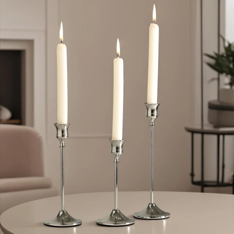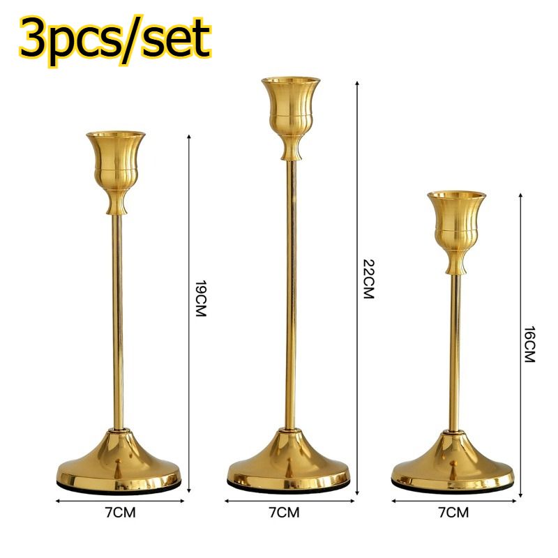 3pcs/set Creative Iron Electroplated Candle Holder Metal Ornament Romantic Dining Table Decor Prop Candlestick Set