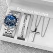 3PCS/Set Fashion Men's Quartz Watch Luxury Large Dial Men Business Watches Necklace Bracelet Set Reloj Hombre(Without Box)