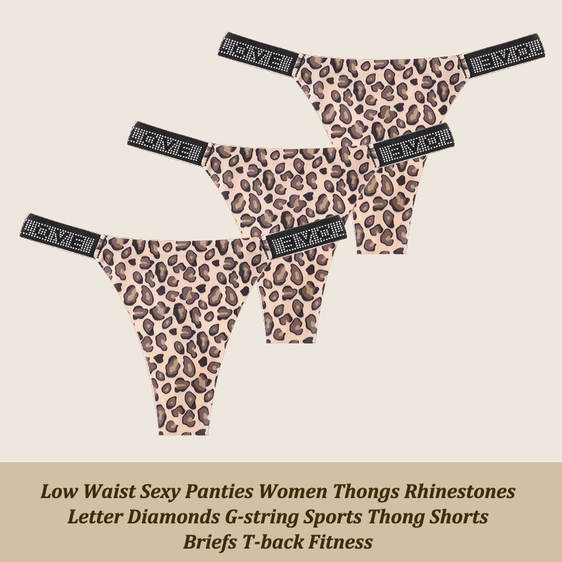 3Pcs/Set Low Waist Sexy Panties Women Thongs Rhinestones Letter Diamonds G-string Sports Thong Shorts Briefs T-back Size XS-XL