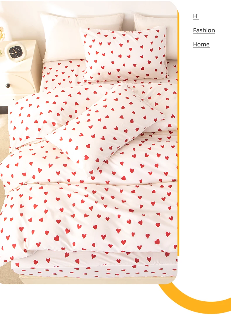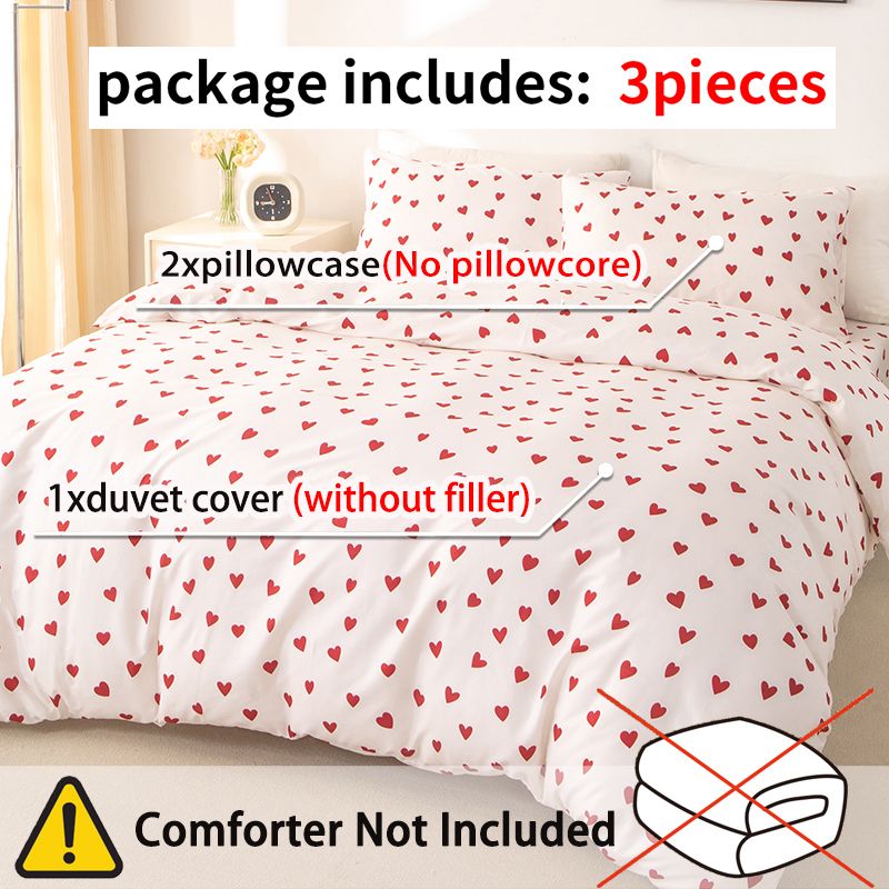 3pcs/set Small Red Heart Printed Duvet Cover Set(1 Duvet Cover & 2 Pillowcase)Soft And Skin-Friendly Duvet Cover Bedding Set For