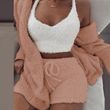 3PCS/Set Thickened Warm Sleepwear Winter Women Long Plush Long-Sleeved Revealing Vest Shorts Student Homewear Solid Fashion