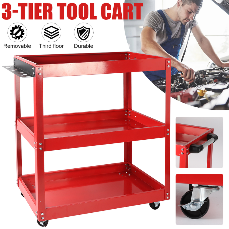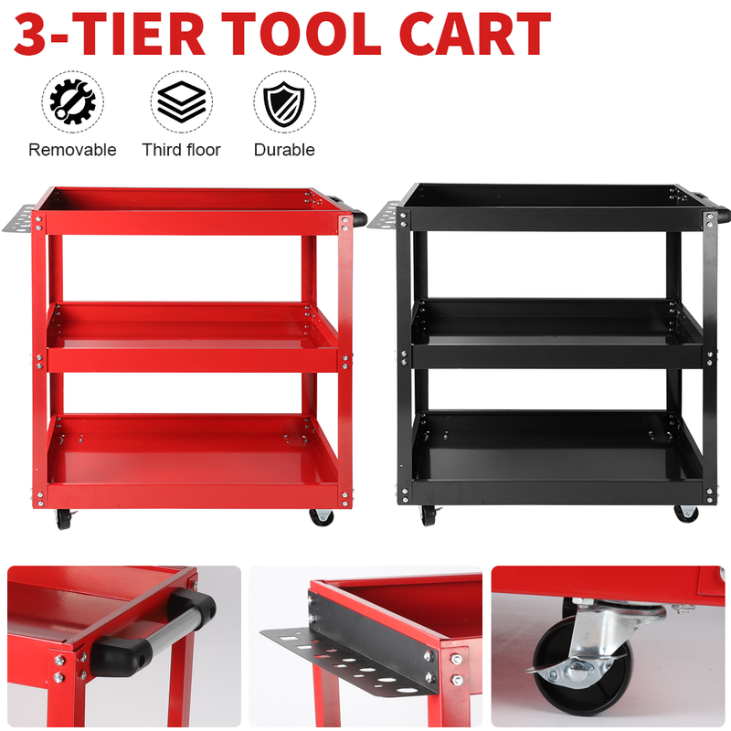 3tier Tool Trolley Cart Utility Service Cart Dolly with 360° Swivel Wheel Ergonomic Storage Handle for Warehouse/Garage/Cleaning