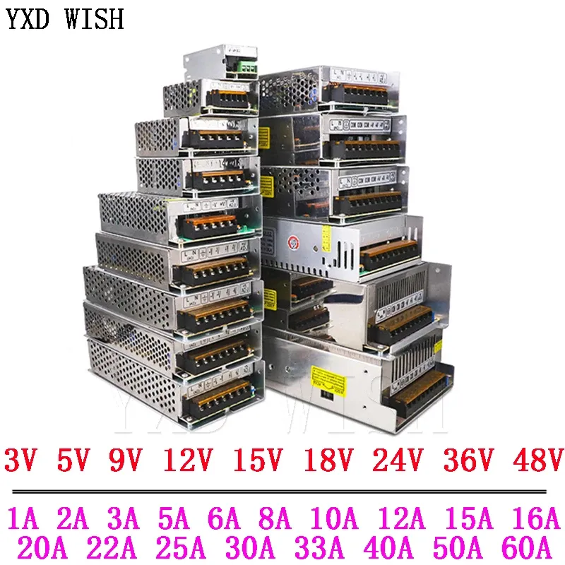 3V 5V 9V 12V 15V 18V 24V 36V Power Supply 1A 2A 3A 5A 6A 8A 10A 20A 50A Switching Power Supply 12 V Volt 220V to 12V AC-DC SMPS