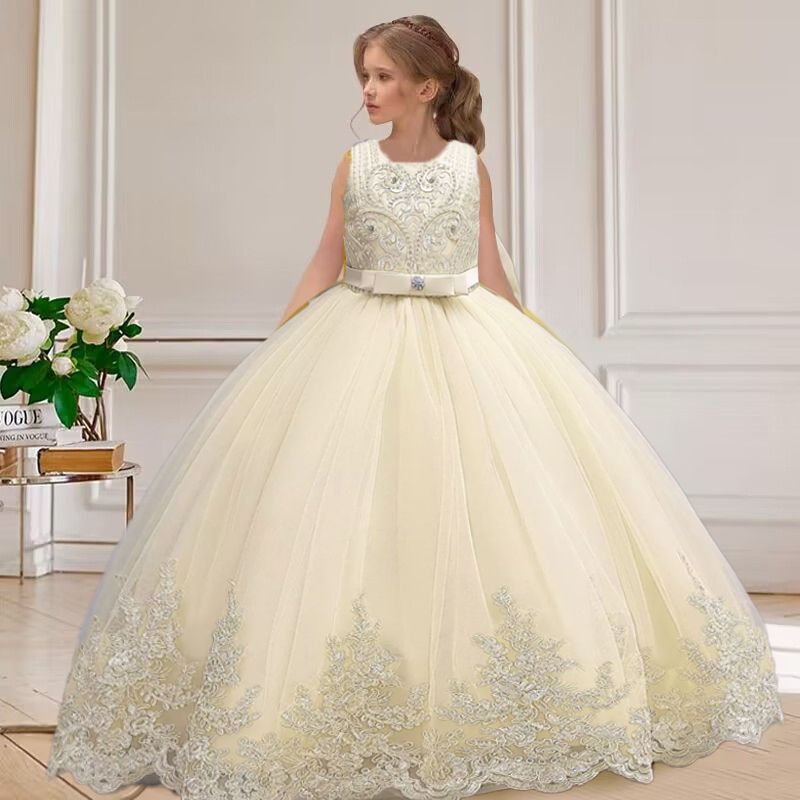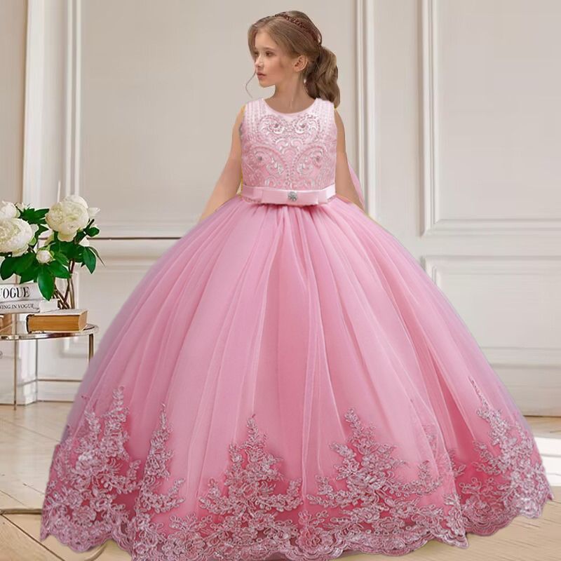 4-12 years old gorgeous girl dress sheer elegant girl birthday party princess dress long carnival evening dress summer clothing