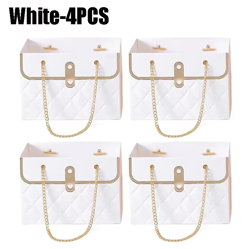 4-20PCS Small Flower Gift Tote Bag Delicate Paper Box with Metal Chain Handle for Bouquet Packaging Floral Presentations