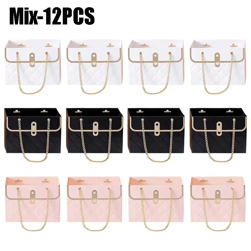 4-20PCS Small Flower Gift Tote Bag Delicate Paper Box with Metal Chain Handle for Bouquet Packaging Floral Presentations