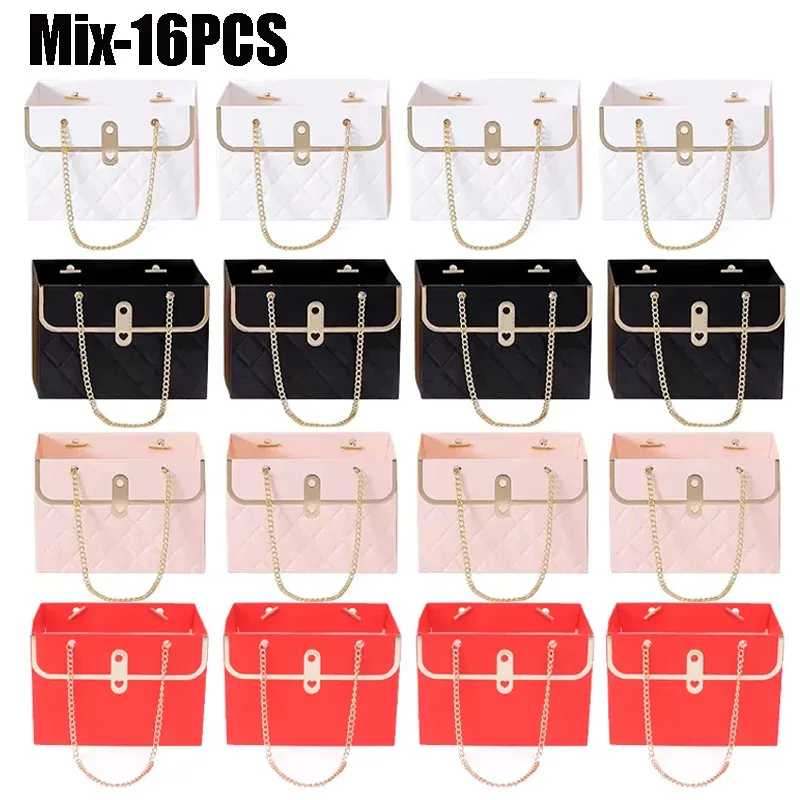 4-20PCS Small Flower Gift Tote Bag Delicate Paper Box with Metal Chain Handle for Bouquet Packaging Floral Presentations