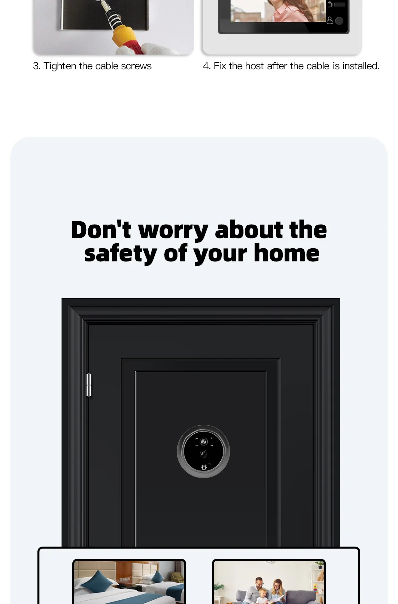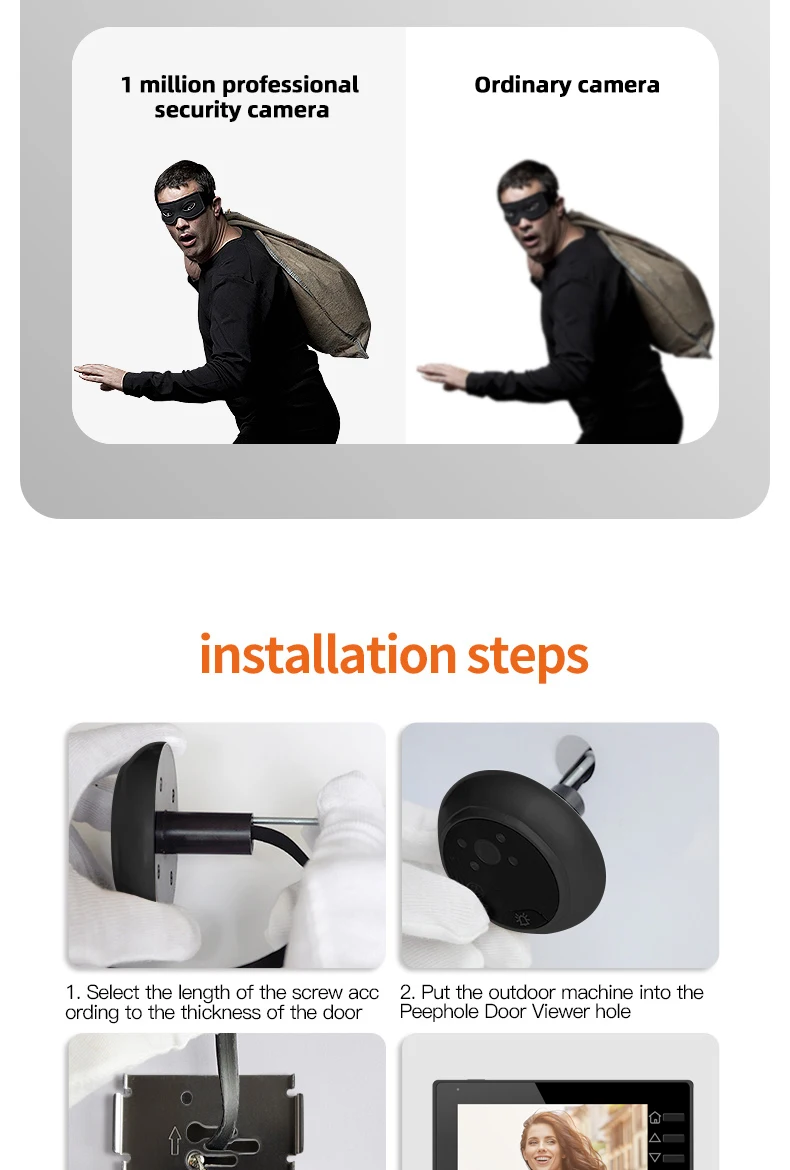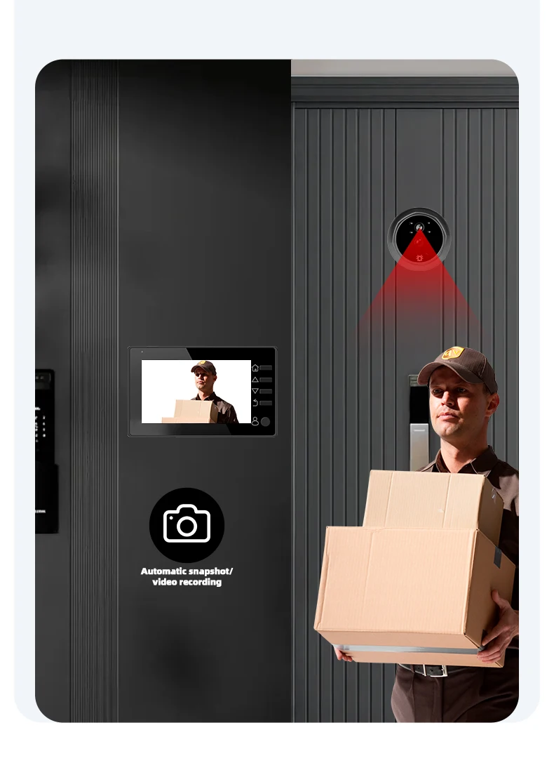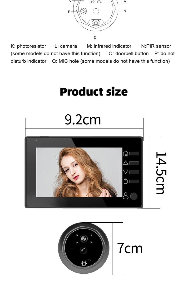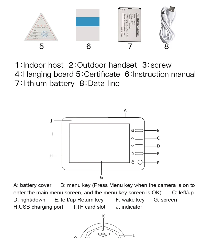 1. The product adopts energy-saving mode, and enters automatic standby mode after ten seconds of screen shutdown. When you need to use it, press the menu button to turn on and check the situation outside the door.