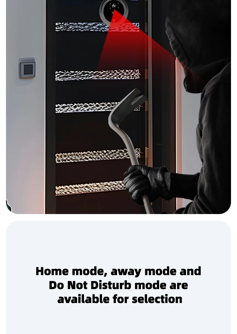 When the door rings, the screen does not light up. It automatically takes photos/videos and stores them for visitors. / Do Not Disturb mode