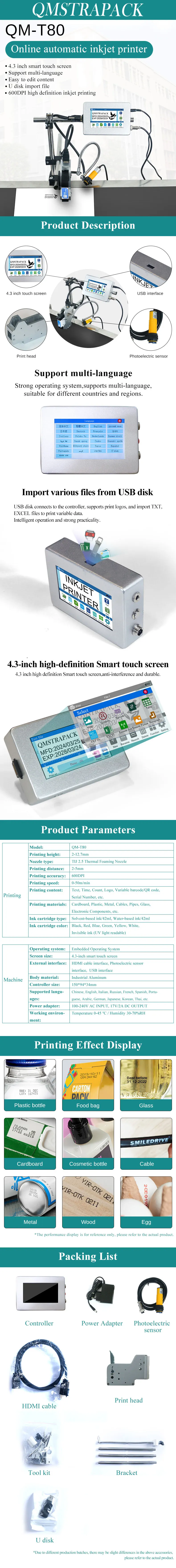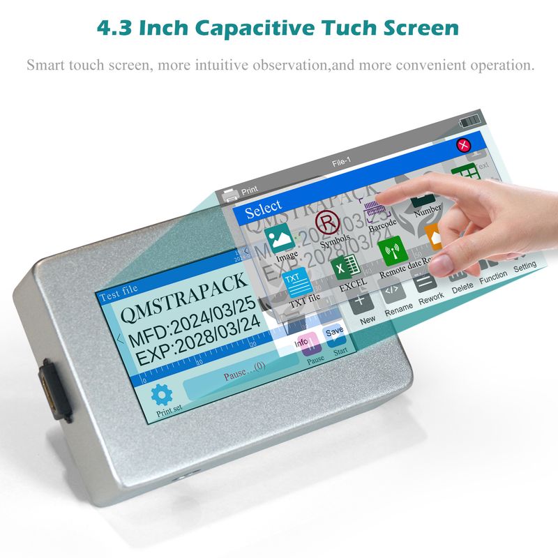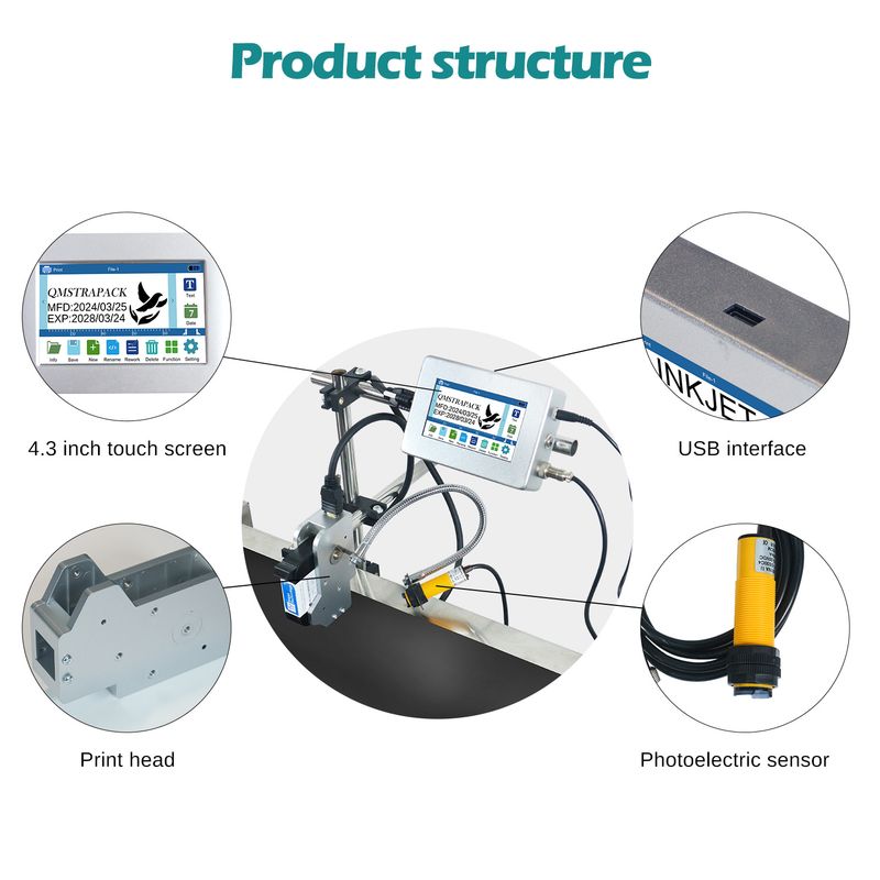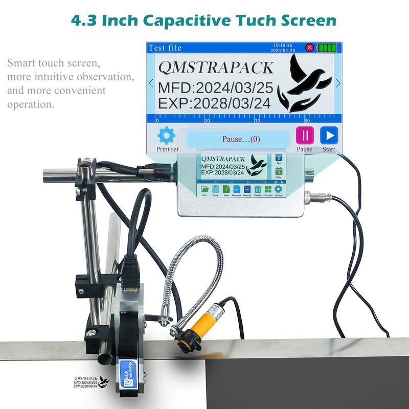 4.3'' Industrial Online Inkjet Printer 12.7/25.4mm for QR Barcode Batch Number Logo Expiry Date Coding Machine (No Cartridge)