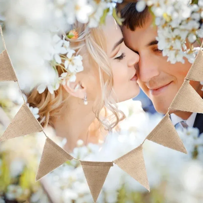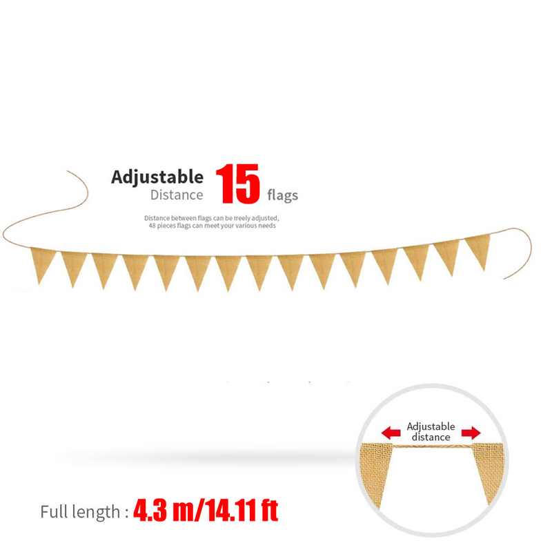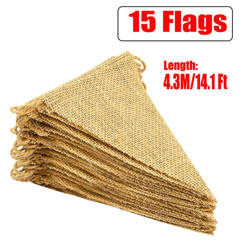 4.3M 15 Flags Burlap Pennants Triangular Vintage Hessian Linen Jute Pennants Garland Western Party Birthday Wedding Props