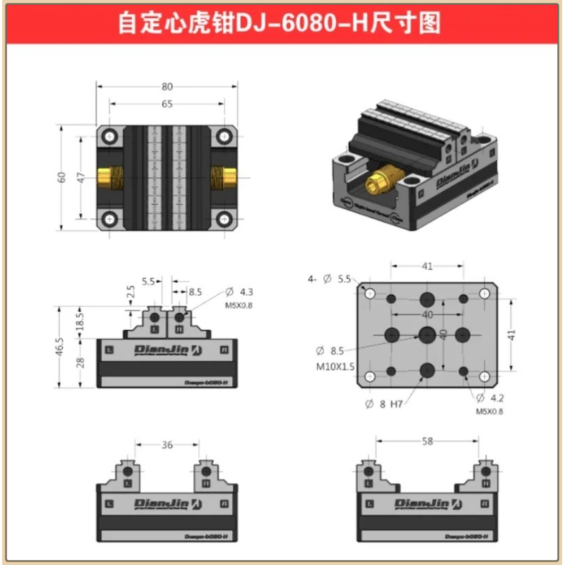 4-5-Axis Fixture Self-centering Vise Positive and Negative Quick Clamping 2-8 Inches DJ-6080H Self Centering Vise