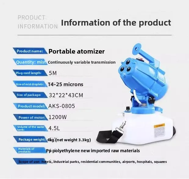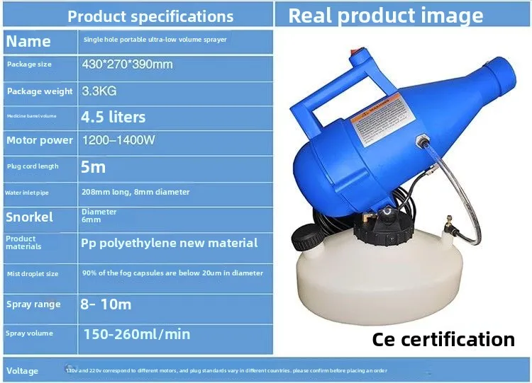 4.5L Portable Handheld Electric ULV Sprayer Ultra-Low Capacity Cold Fogger Mosquito Killer for Home Garden Yard