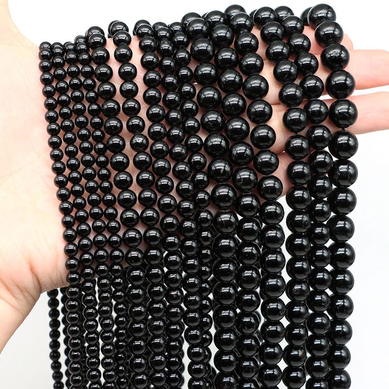 4 6 8 10mm Natural Black Tourmaline Beads Round Smooth Loose Stone Bead For Jewelry Making Diy Bracelet Necklace Accessories