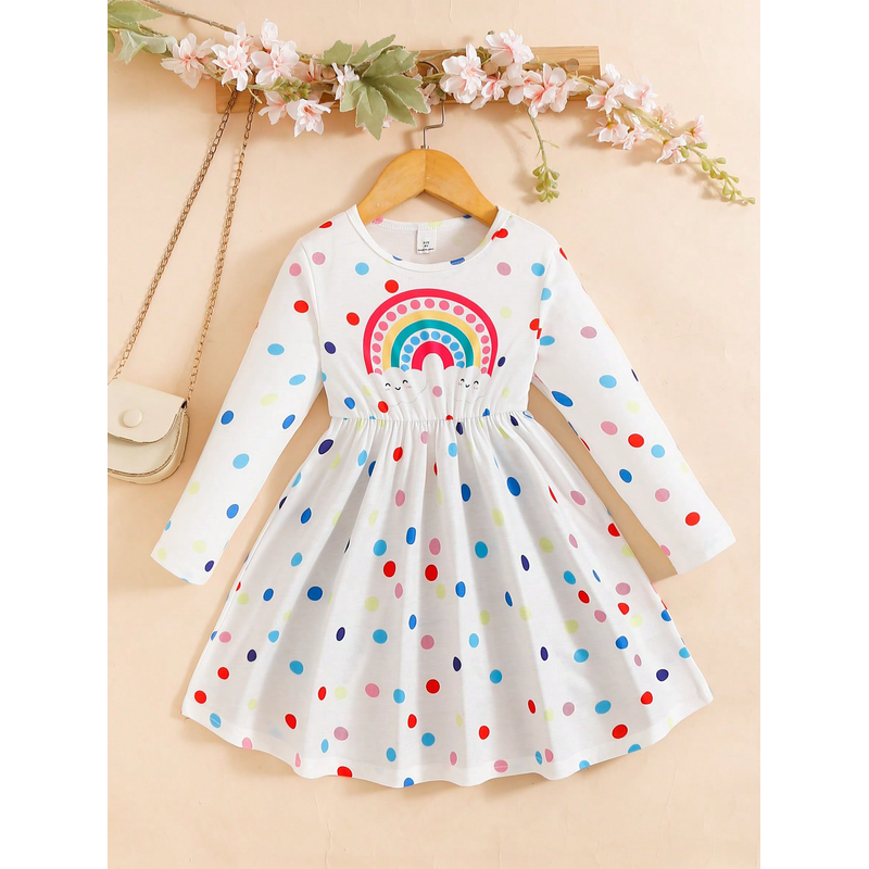 4-7 Year Children Girls Spring Autumn Dress Rainbow Polka Dot Long sleeves Dress Girl Fashionable Clothing