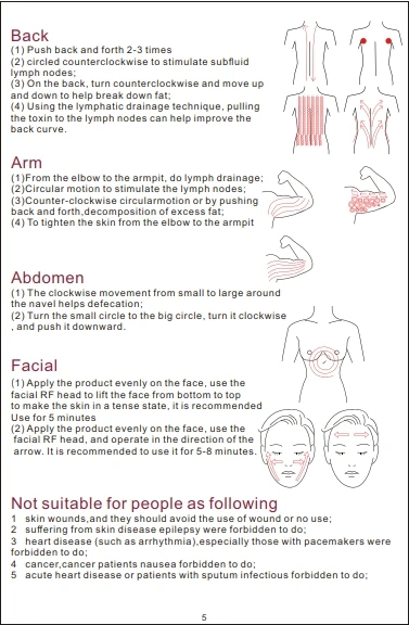 3 pole face radio head acts on the skin, can dermal collagen fibers is heated to 45 degrees to 65 degrees, collagen fibers victoria shrink immediately, so that the loose skin wrinkles are stretched, while stimulated proliferation of dermal collagen, prompting dermal thickness and density increase, so as to achieve the removal of wrinkles, slashing scars, restore skin elasticity and gloss to achieve firming, wrinkle purpose.The main function of EMS muscle stimulator is to relax and tighten, increase muscle mass and reduce facial fine lines.